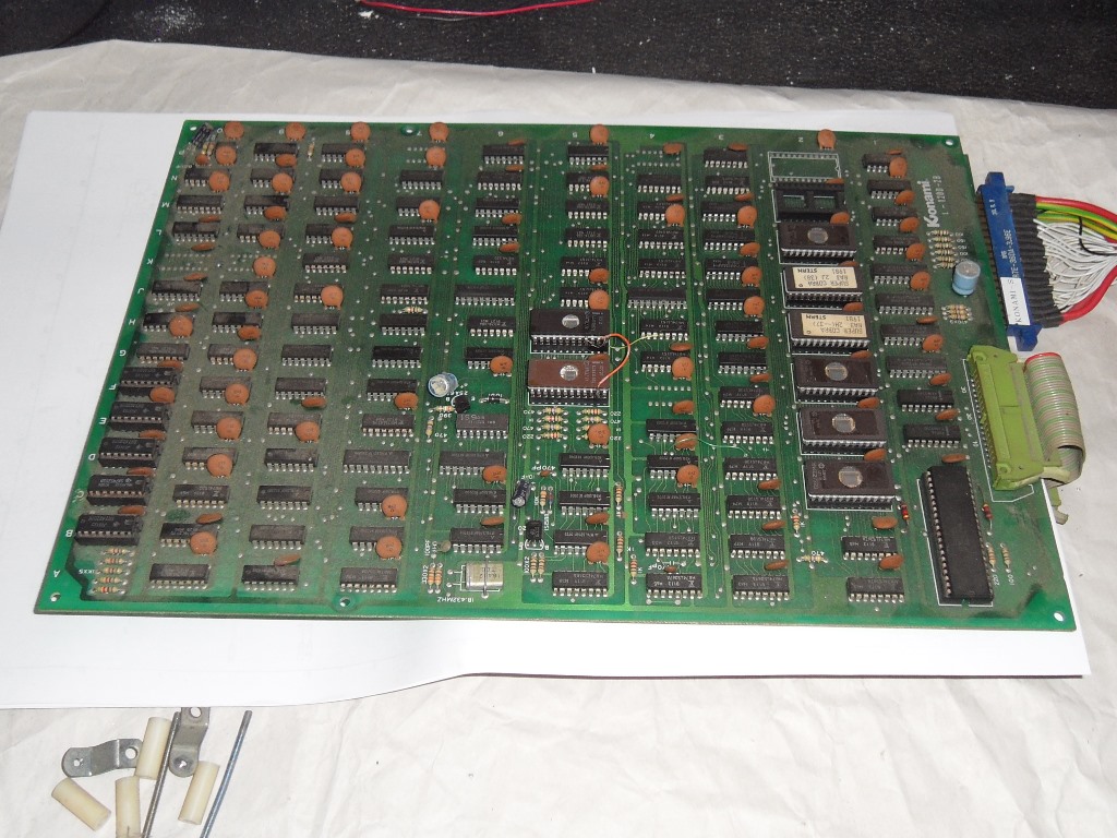 With new sockets and the wire hacks removed the graphics were solid. The plan now was to burn a set of Konami game EPROMS since the cabinet would have had the original Konami game in it rather than the US Stern license.