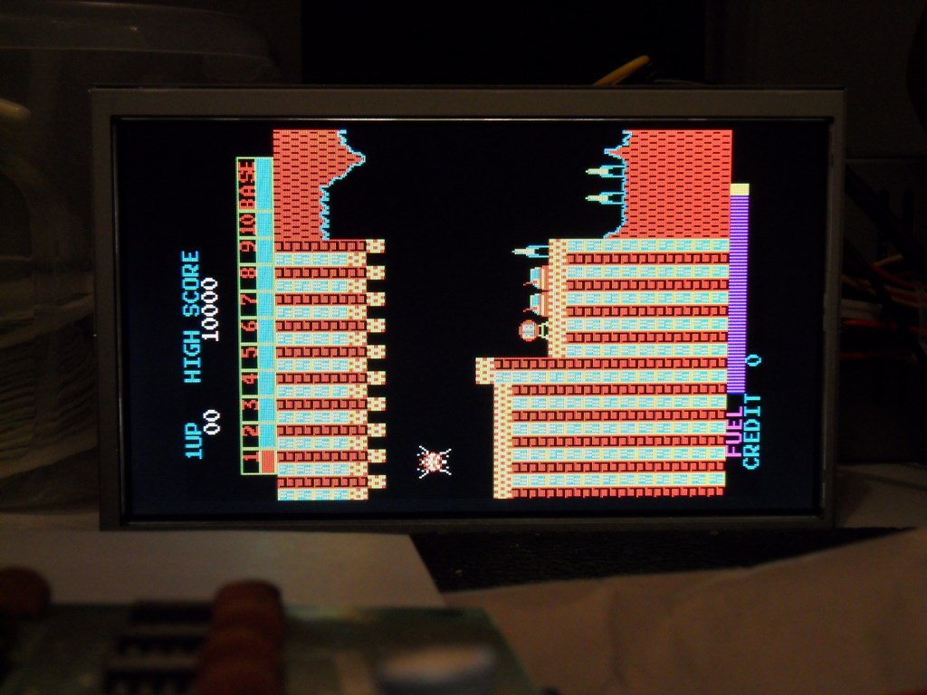 I found a mostly working original Stern Super Cobra PCB to use but the graphics drifted in and out. Flexing the main PCB and pressing on the sprite RAM caused video artifacts.