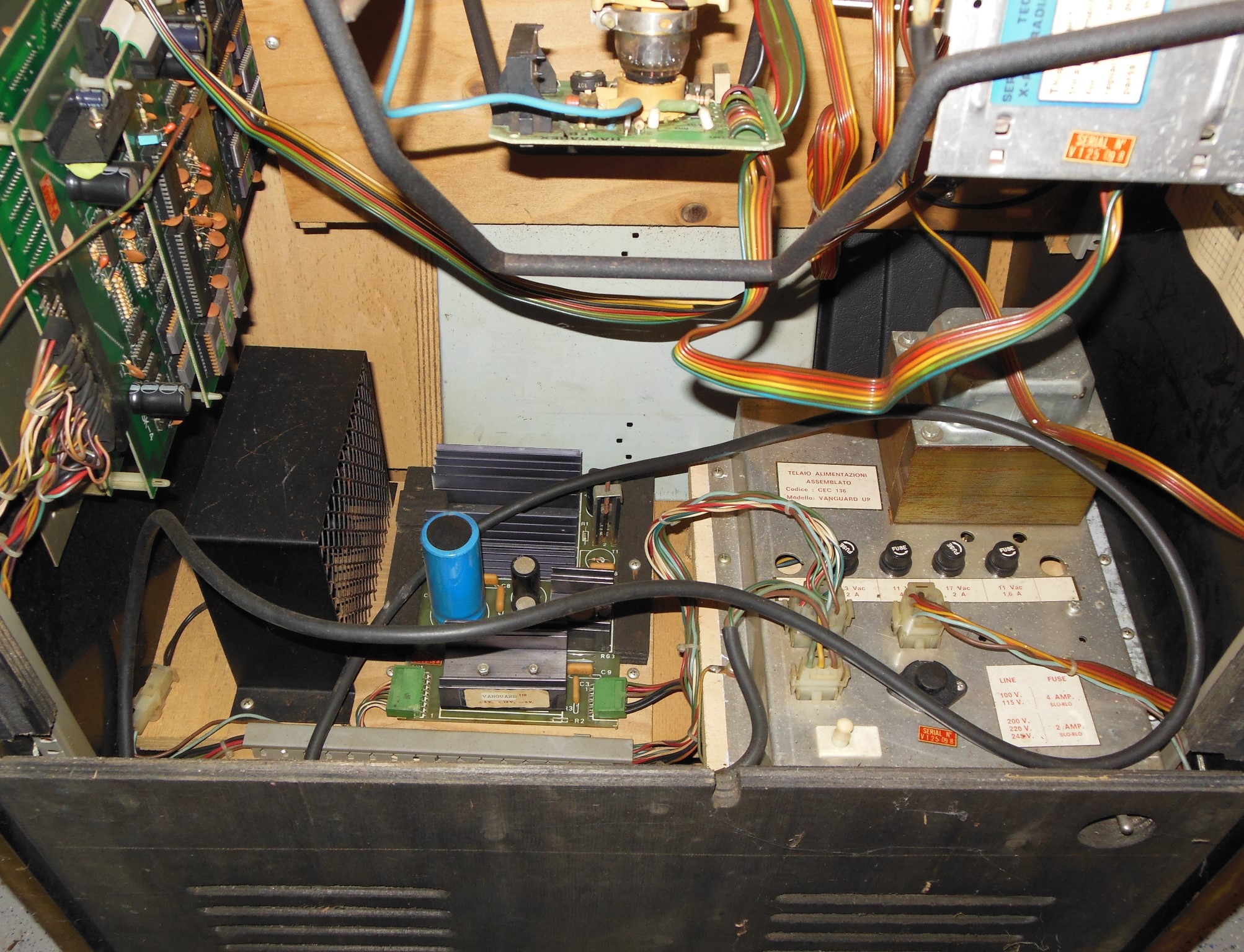 The power assembly had almost no corrosion anywhere, not even the fan grill. The control panel was missing the back cover but the cover was inside the cabinet behind the coin door. The coin door was also in very good condition with all wiring complete and there was a Zaccaria back door key on the ring.