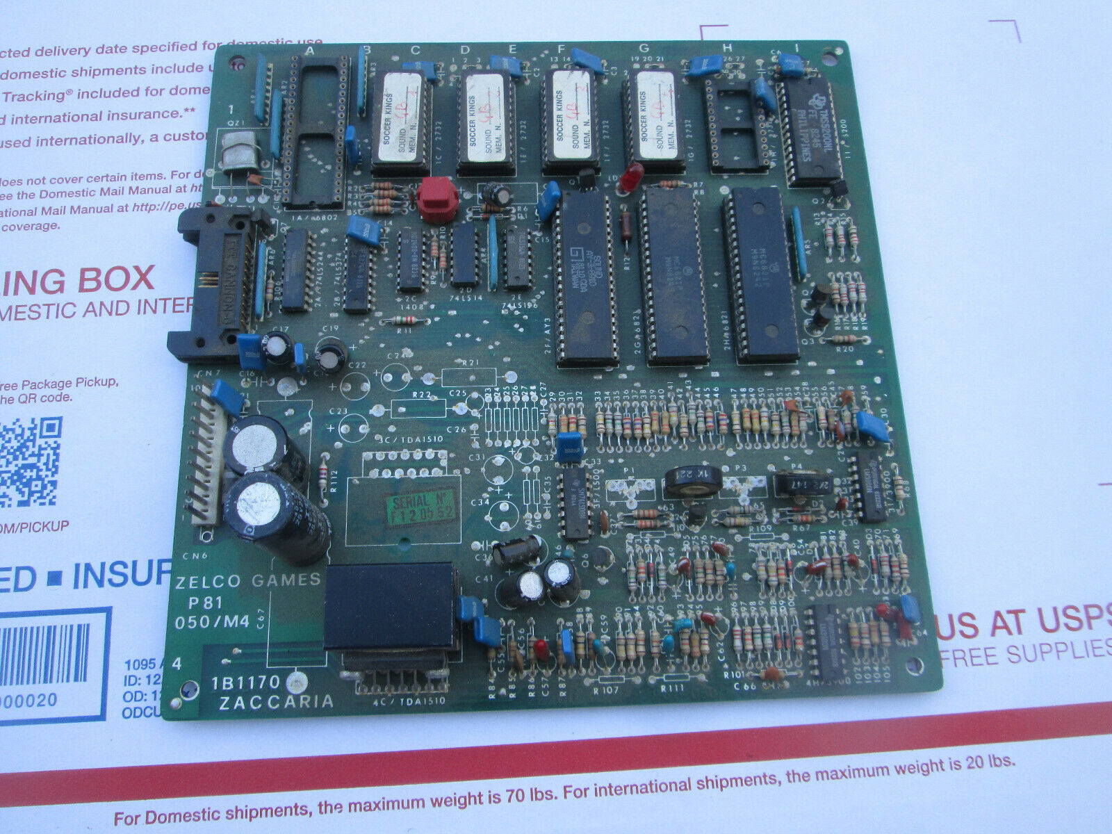 Ebay US listing of a Zaccaria Soccer Kings pinball sound PCB (1B1170).