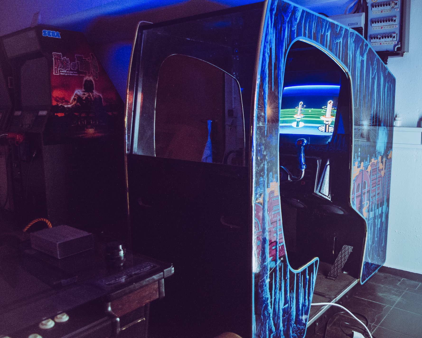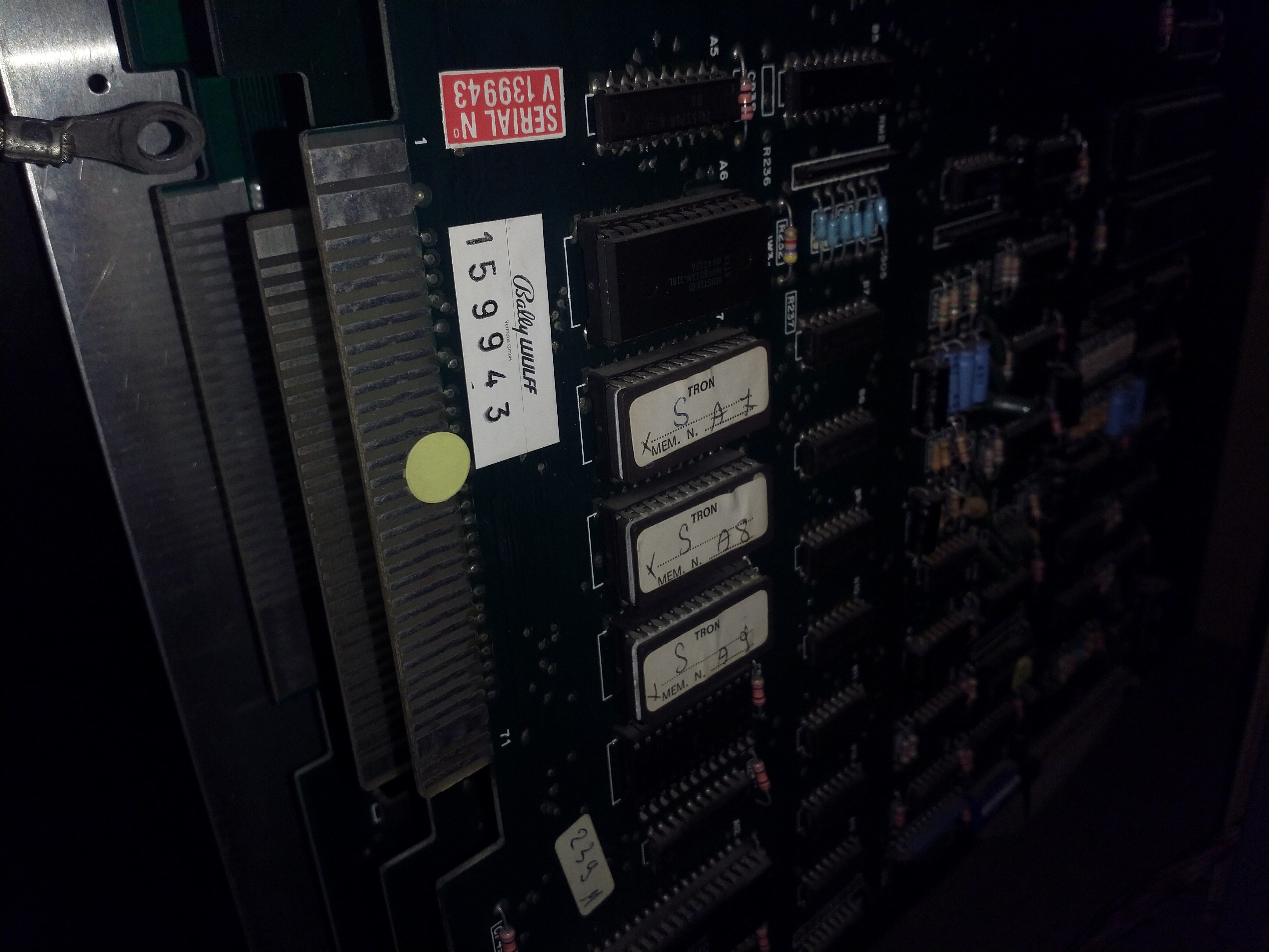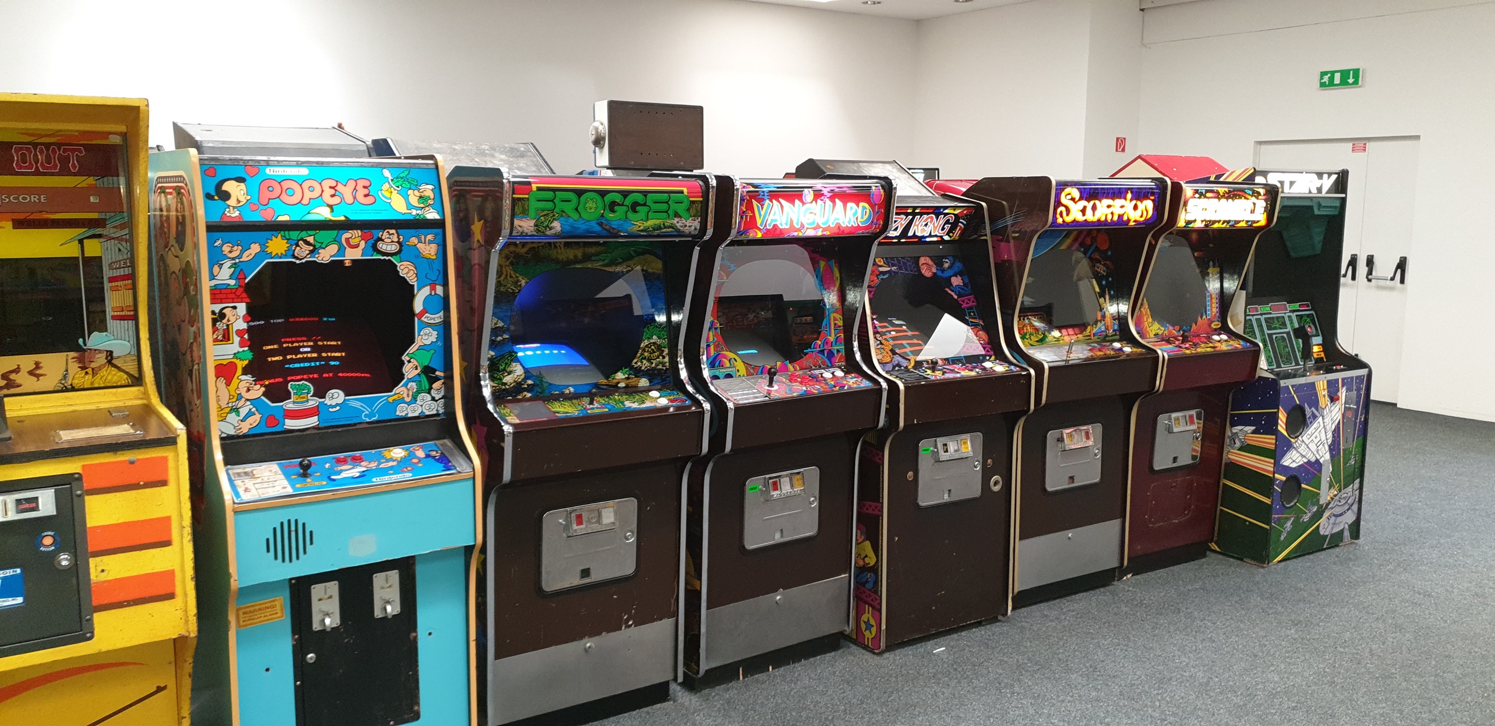 Email from Bela H. about Zaccaria Dodgem and Super Galaxian uprights found in pub storage. Note that the Super Galaxian has a black and white monitor.