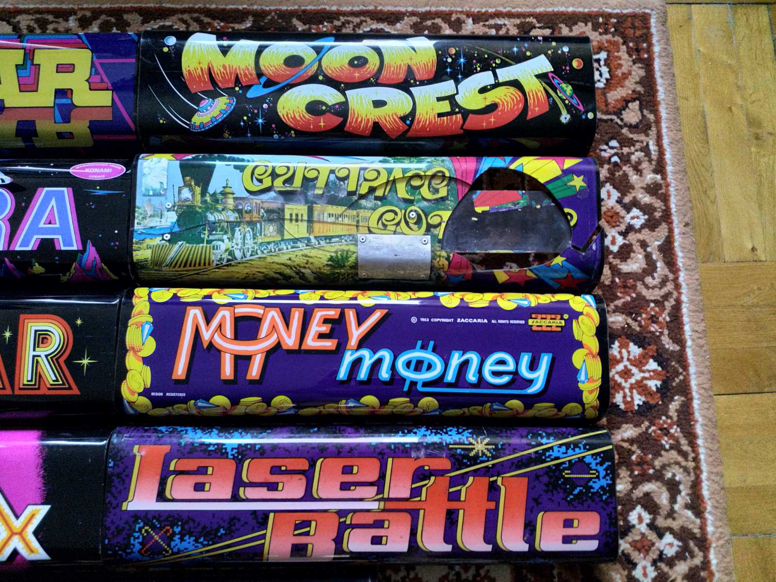 For sale post by Krupl A. on the Arcade Europe II Facebook group for a collection of Zaccaria games with reproduction artwork.