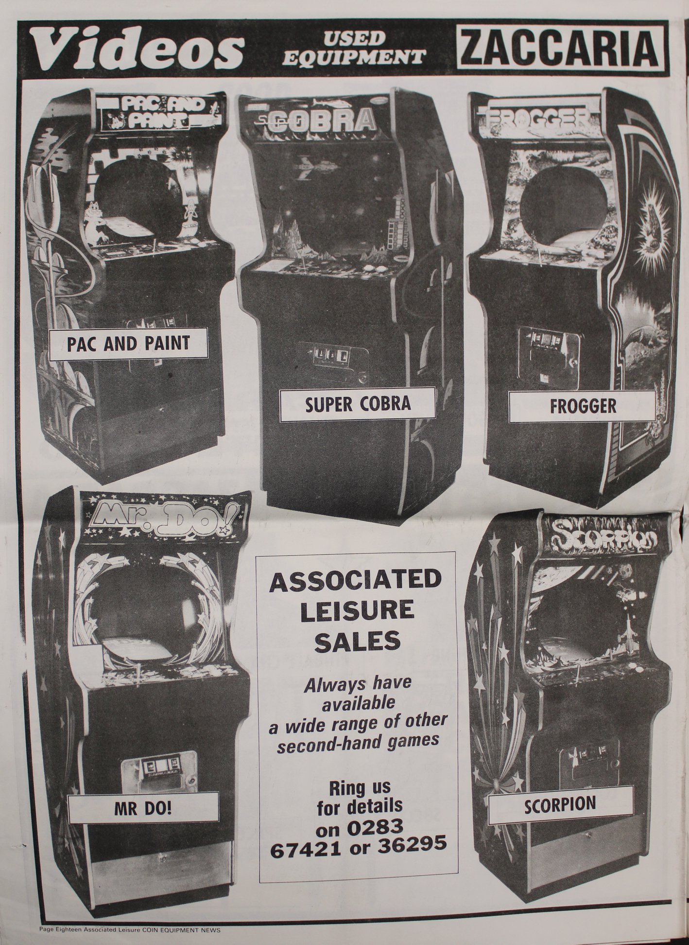 Facebook post by Andys Arcade about an Associated Leisure advertisement for Zaccaria games.
