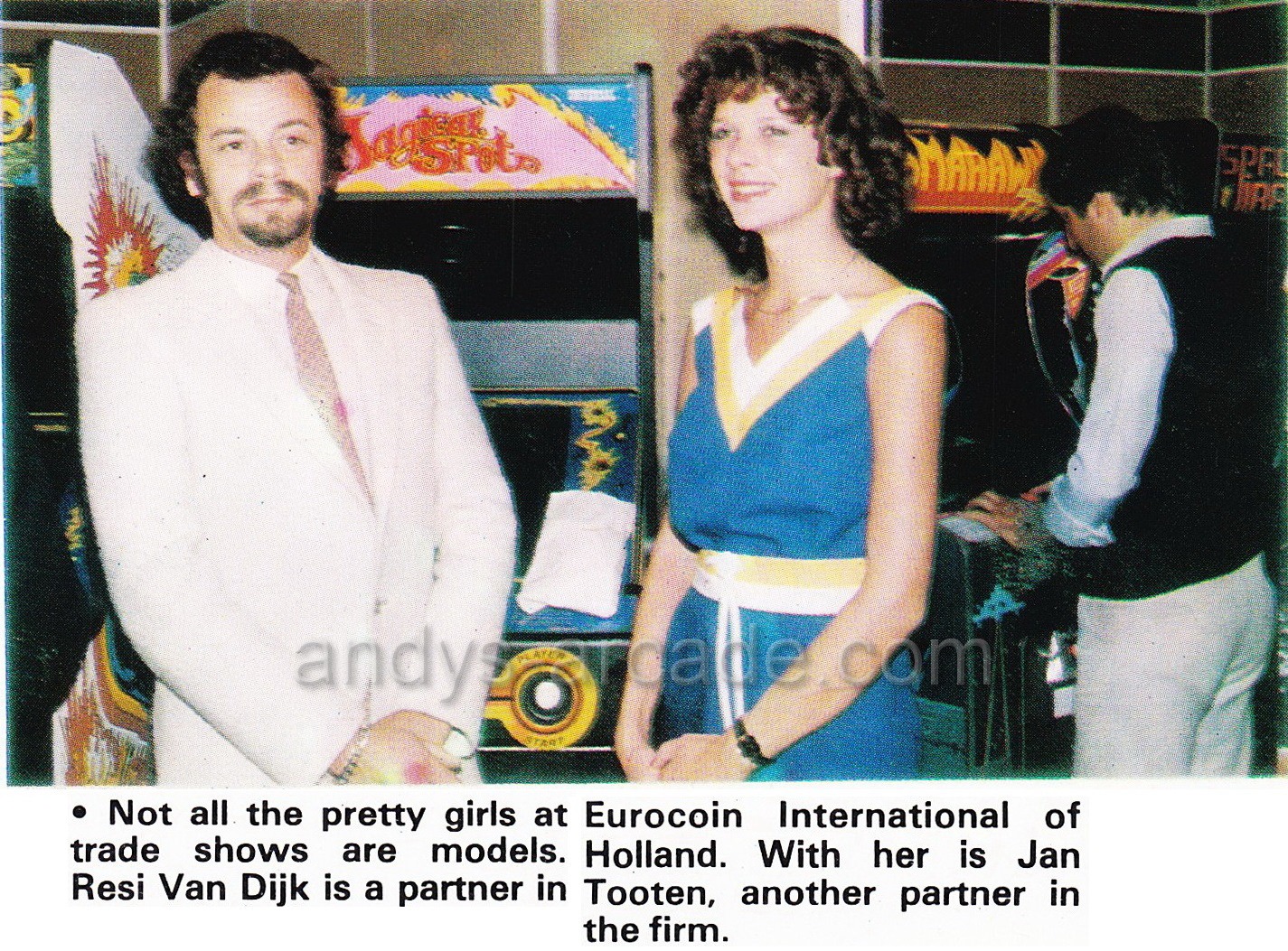 Facebook post by Andys Arcade about a Zaccaria Sea Scare/Tomahawk upright in the background of trade show photographs.