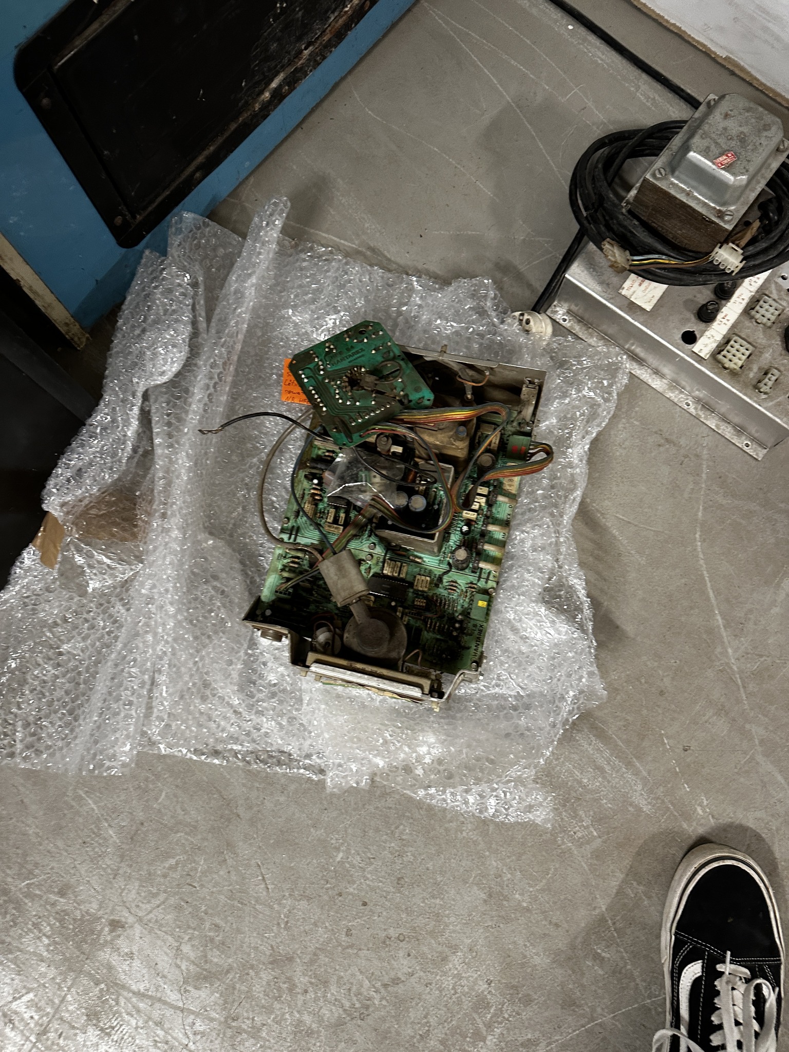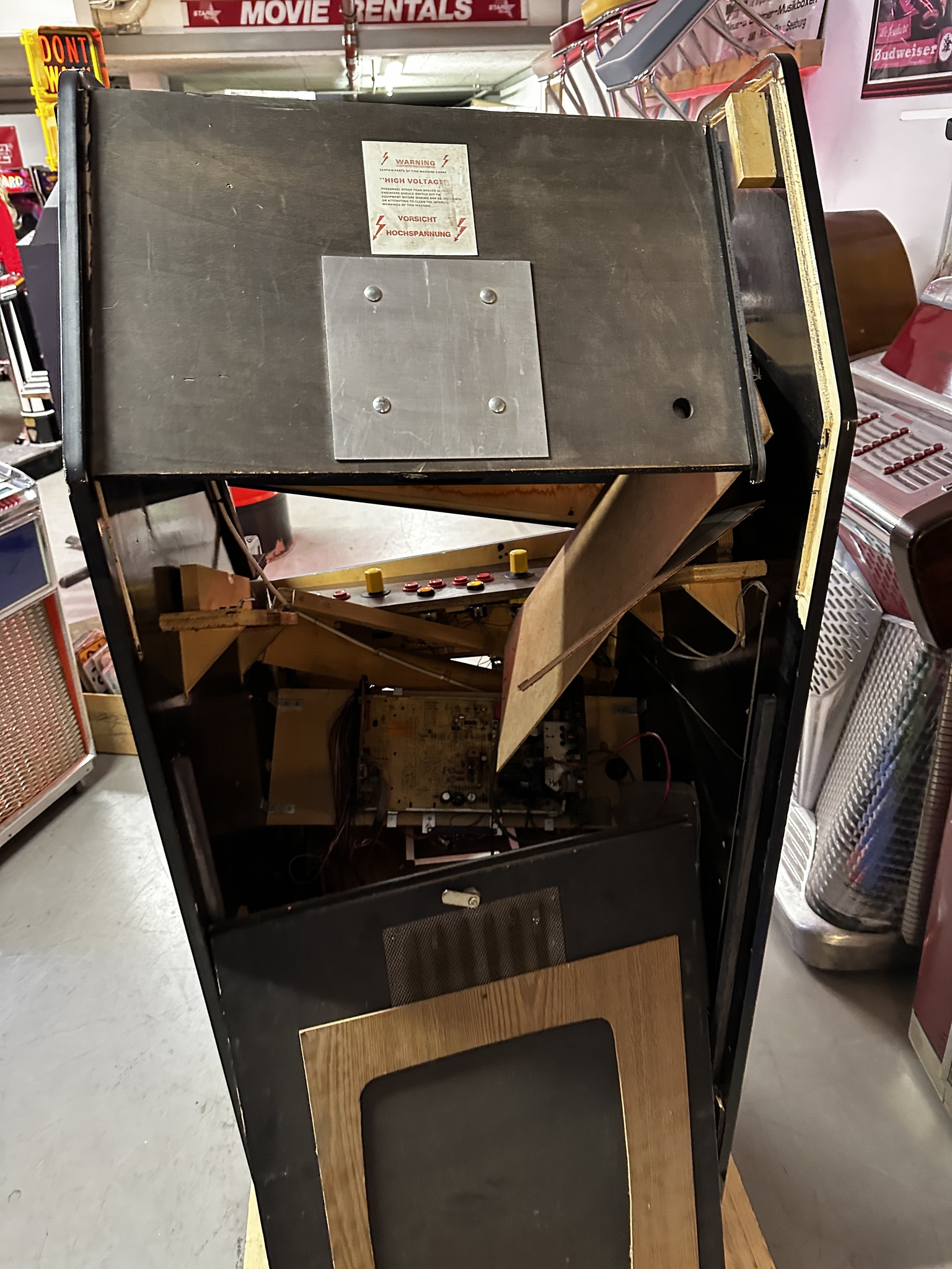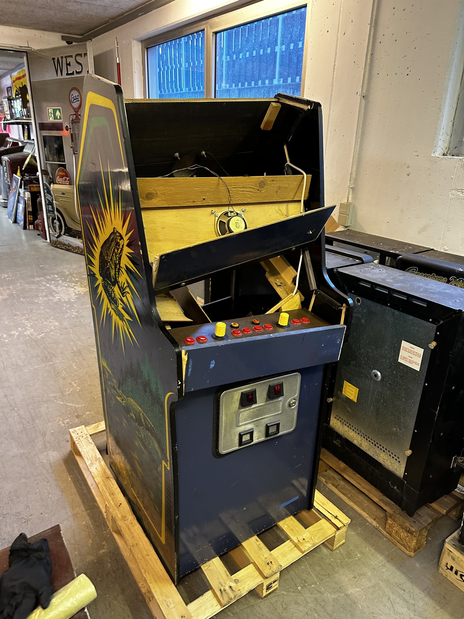 Post by Blackforest Warehouse on Facebook about a broken Zaccaria Frogger upright.