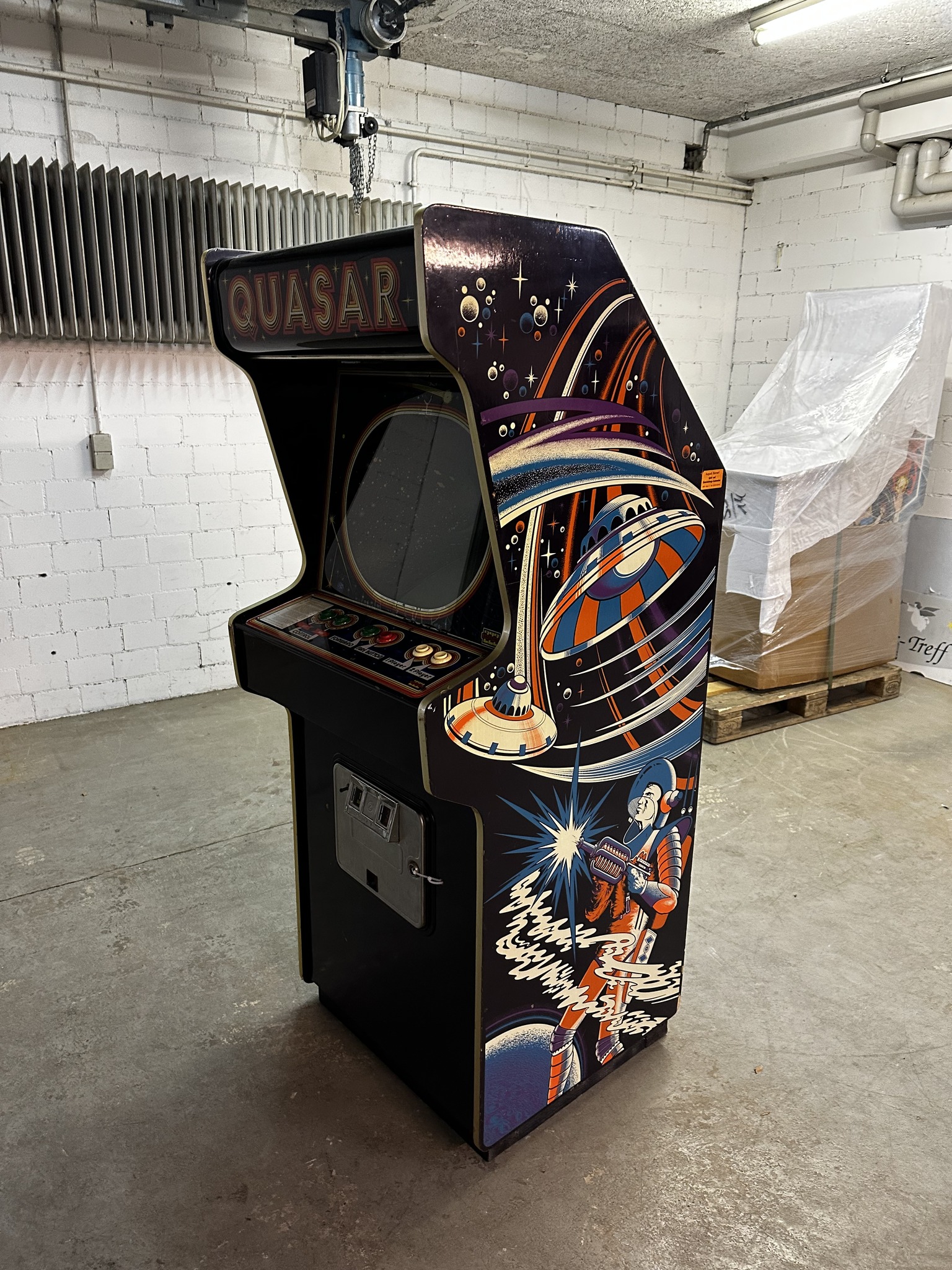 For sale post by Christian K. on the Arcade Collectors Europe Facebook group for a Zaccaria Quasar upright.