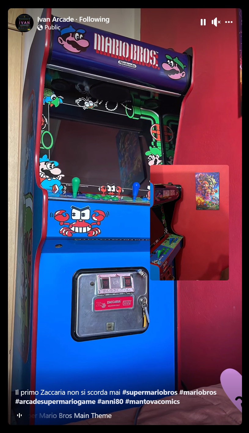 Post by Ivan Arcade on Facebook about a custom Zaccaria Marios Bros upright.