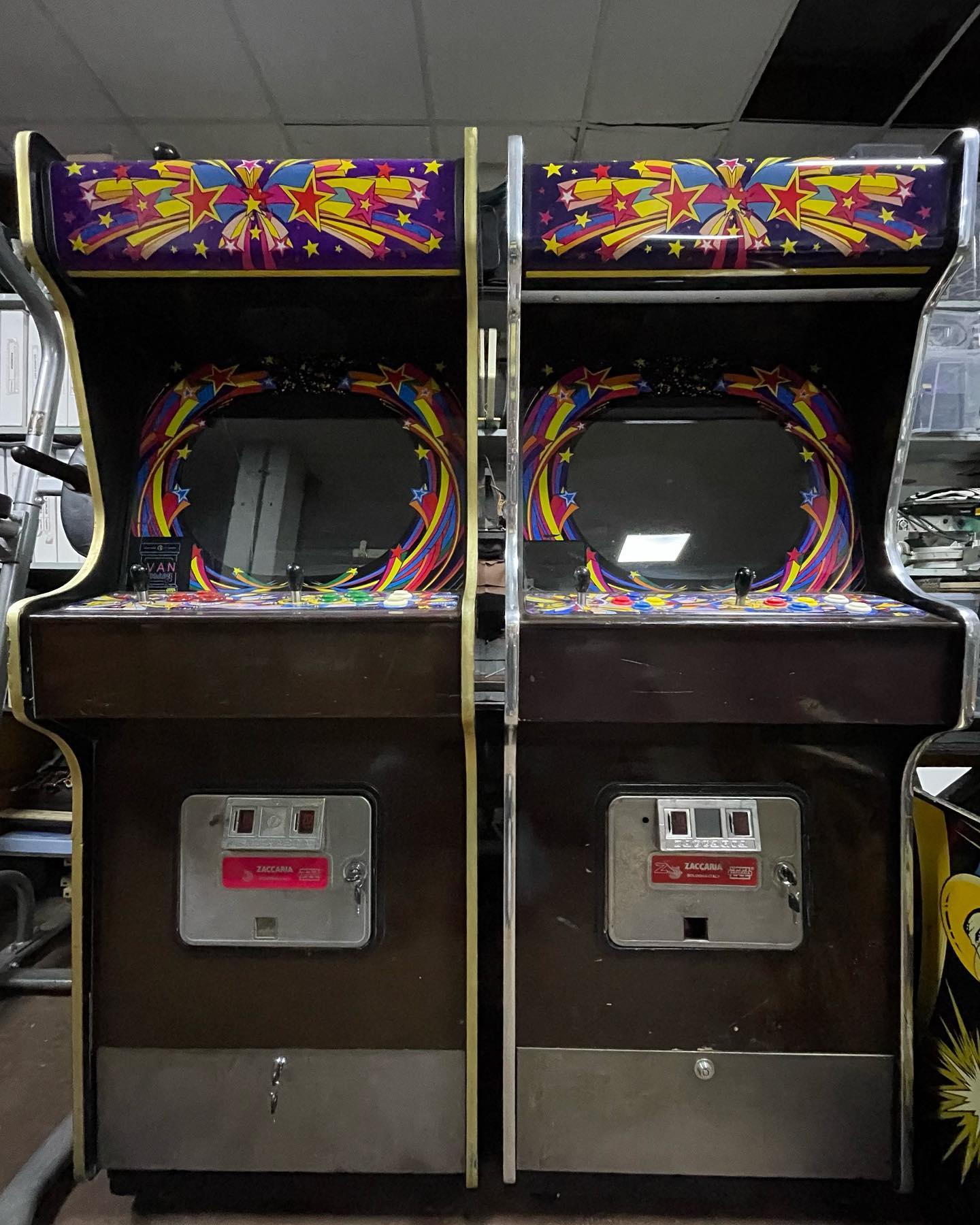 Post by Ivan Arcade on Facebook about a pair of Zaccaria Universal star uprights.