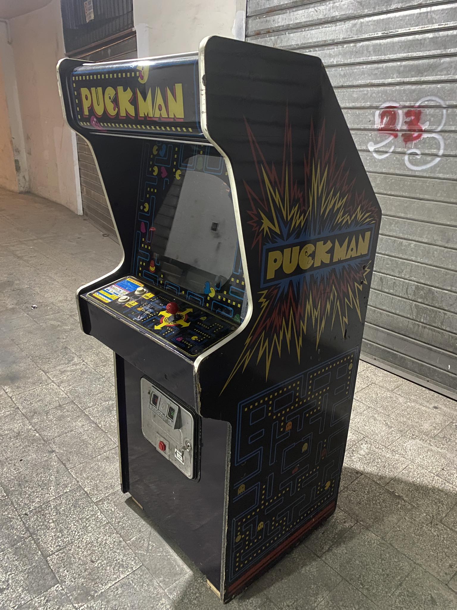 Post by Matteo L. on Facebook about a Zaccaria Puck Man upright.