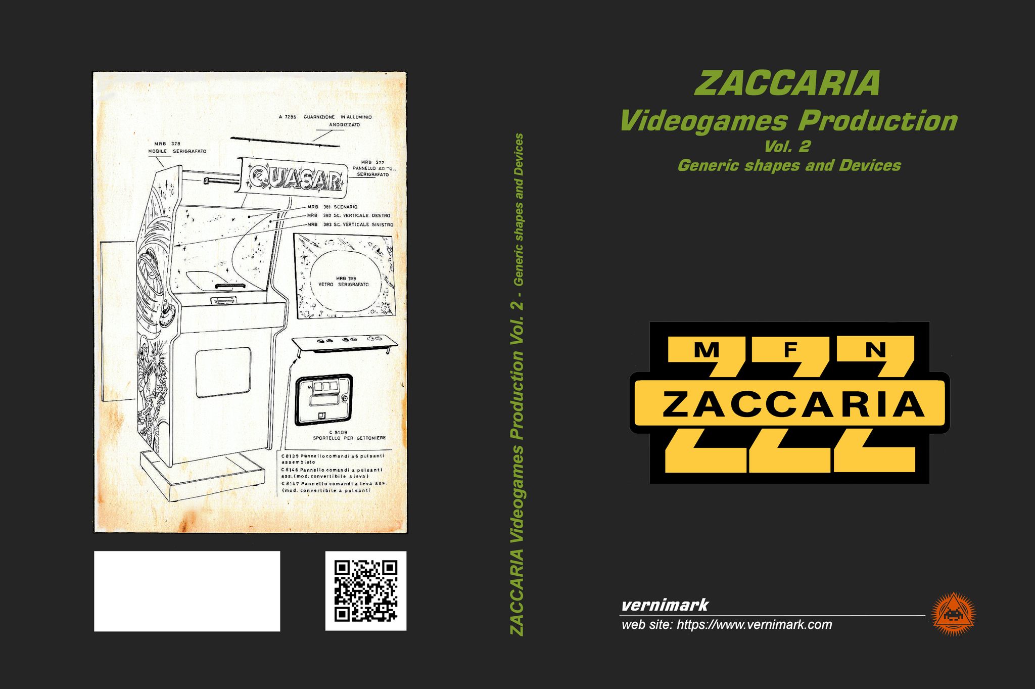 Post by Vernimark on Facebook about a Zaccaria Videogames Production Volume 2 book featuring a standing tabletop cabinet.