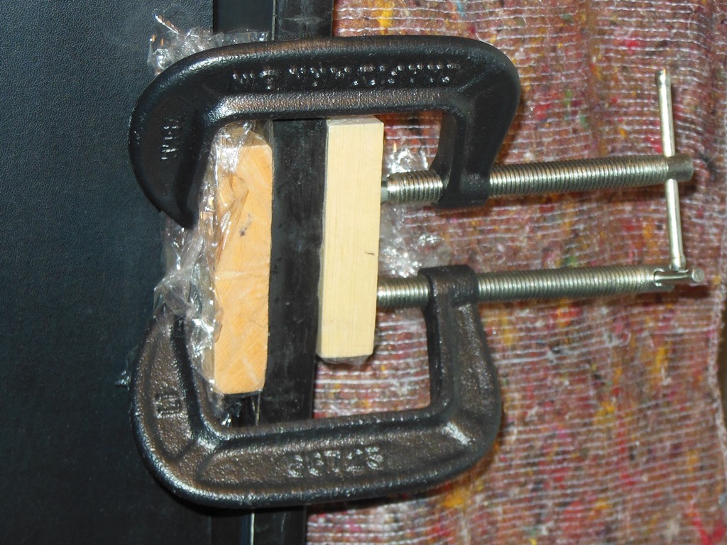 The G clamps and wood pieces worked fine to press the split back together. The resultant repair looks pretty good leaving only some minor filling and repainting.
