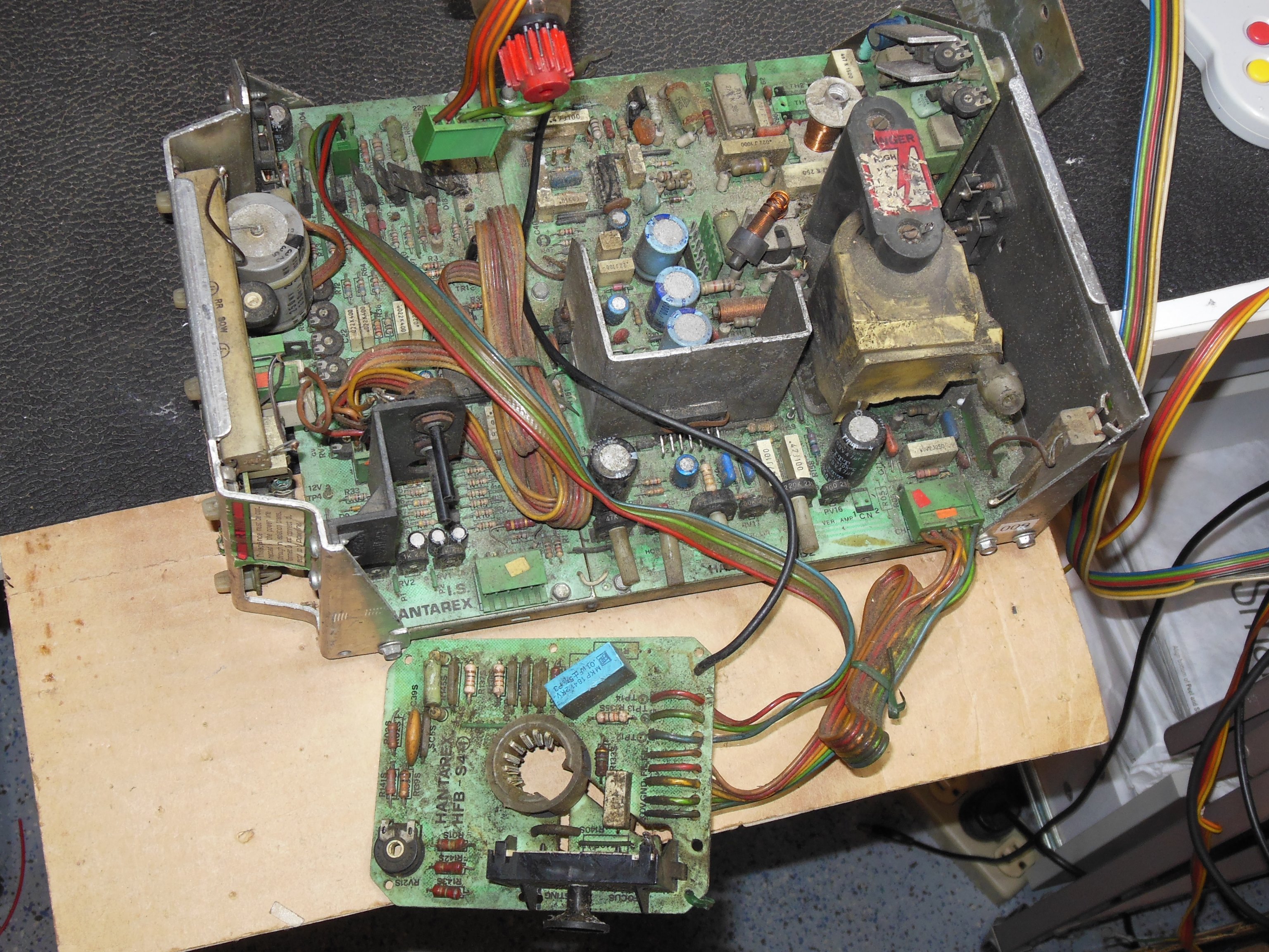 The game failed on show day 1 with no picture and playing blind. Inspection found chatter noise coming from the chassis and no HV. The monitor chassis was swapped out with one borrowed from the dead Sea Scare to get Astro Wars going again and the game made it almost to the end of the show before the game PCB failed with no boot.