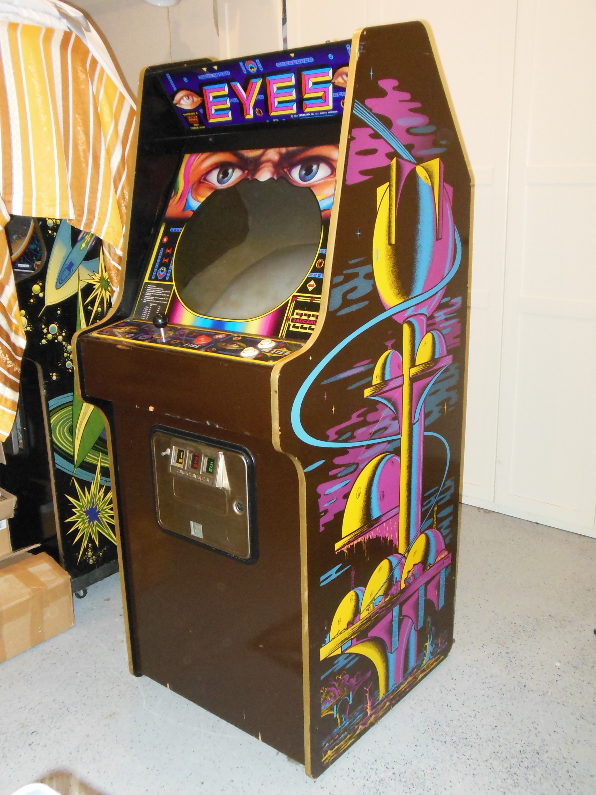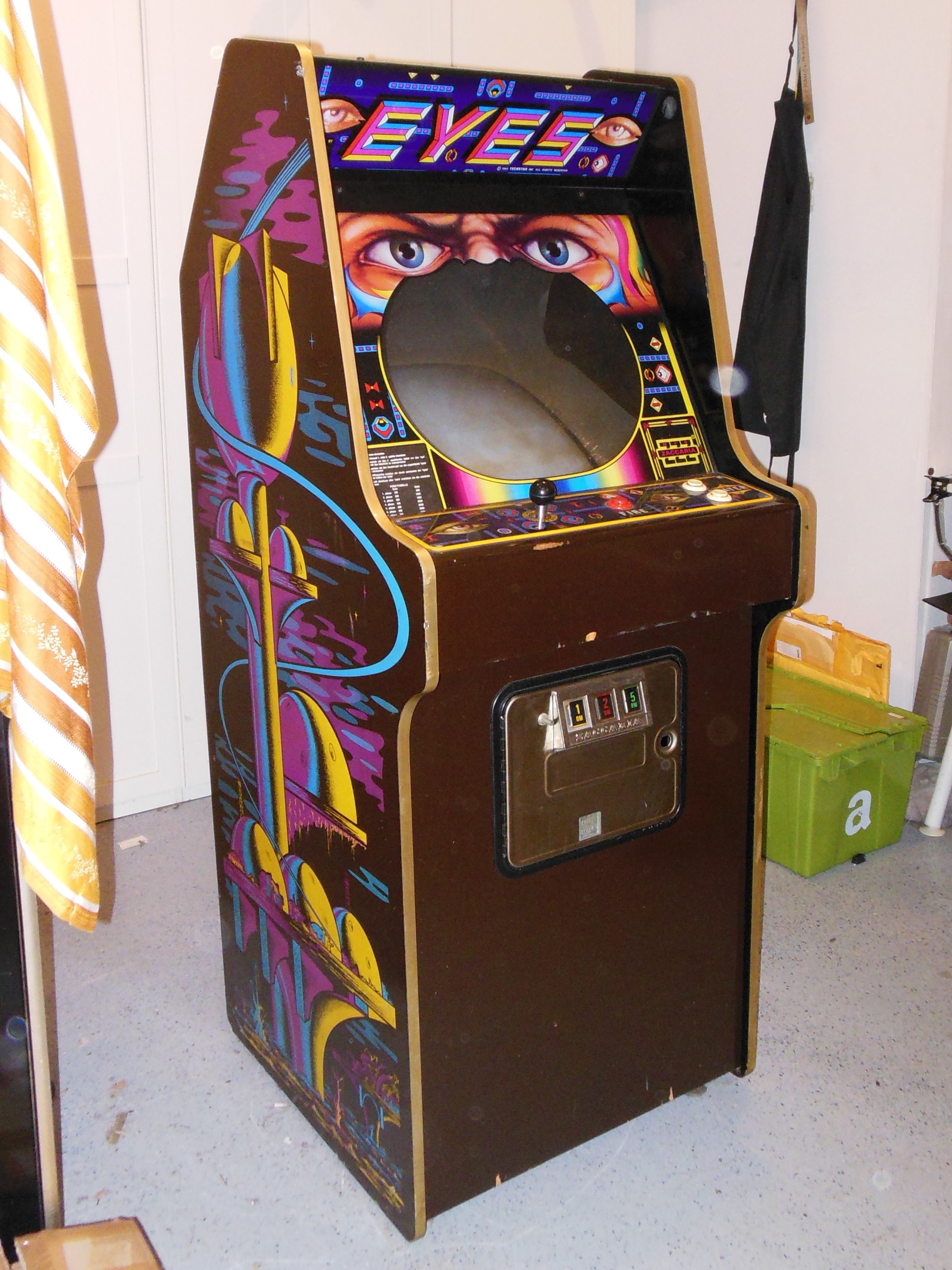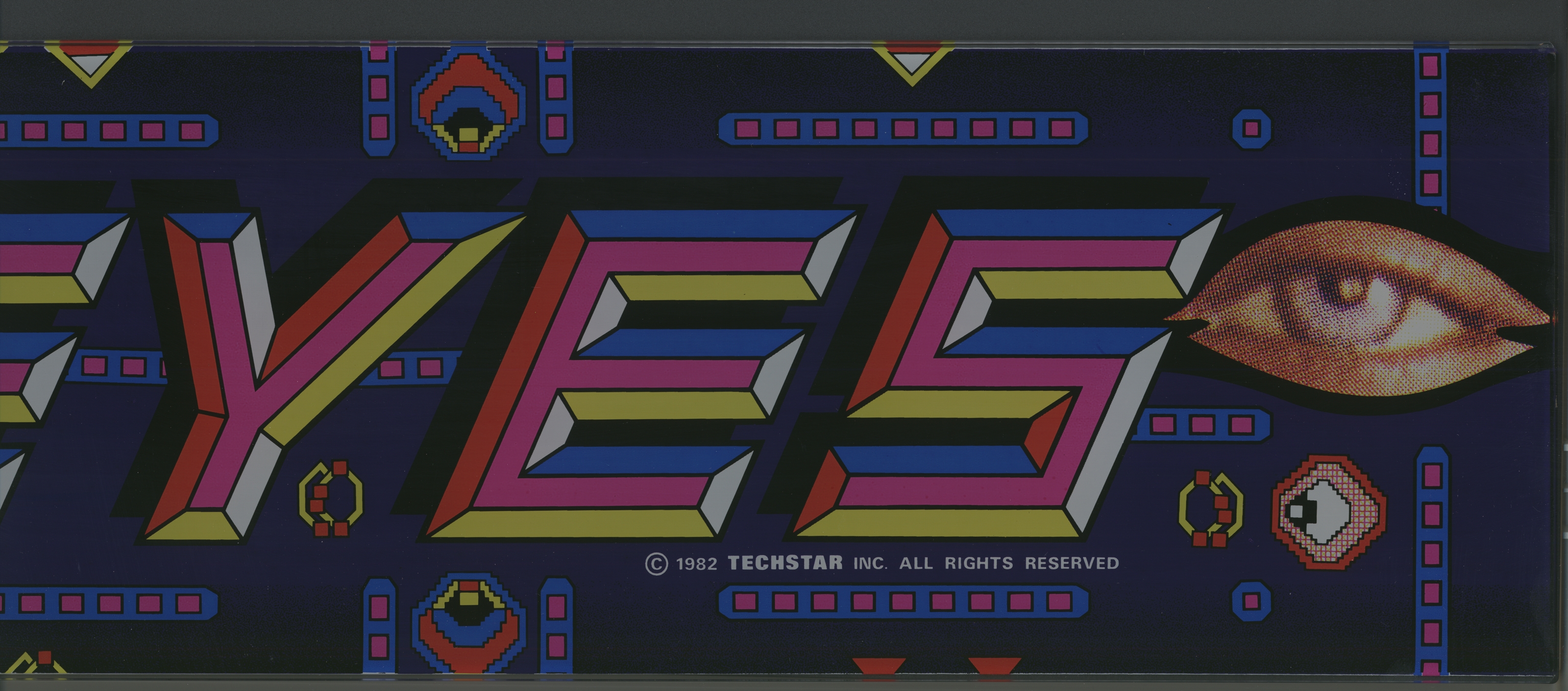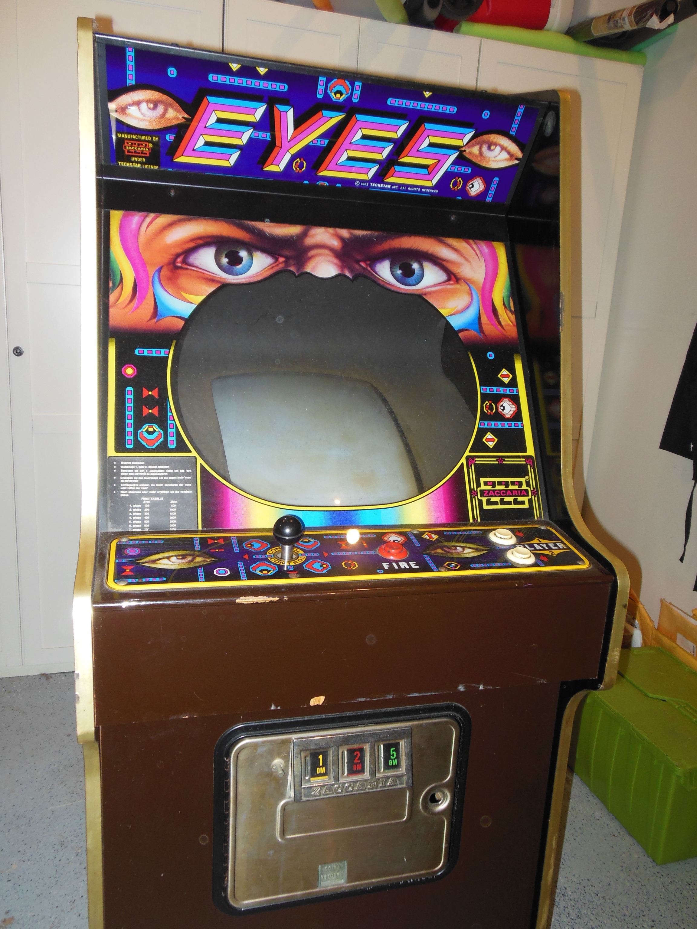 I had independently acquired some Eyes game PCBs that included one Zaccaria produced board. The serial number on that PCB was V137835, one before the cabinet V137836. It's the closest randomly acquired combination I'd seen. On the bench the game booted, coined and started but joystick 'up' was stuck. Visual inspection identified a broken resistor pack, RA9 (1K, 9-pin) that I ordered.