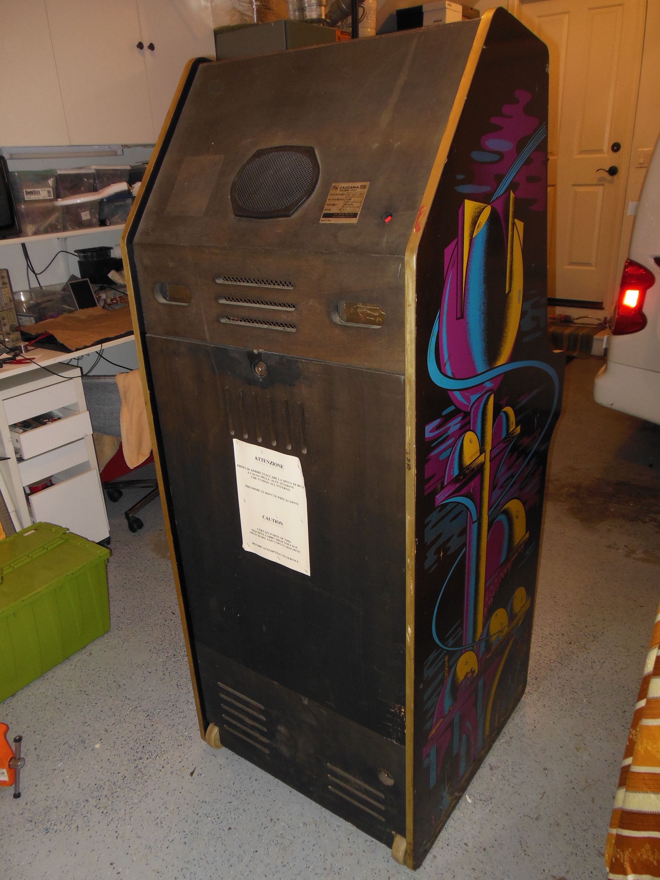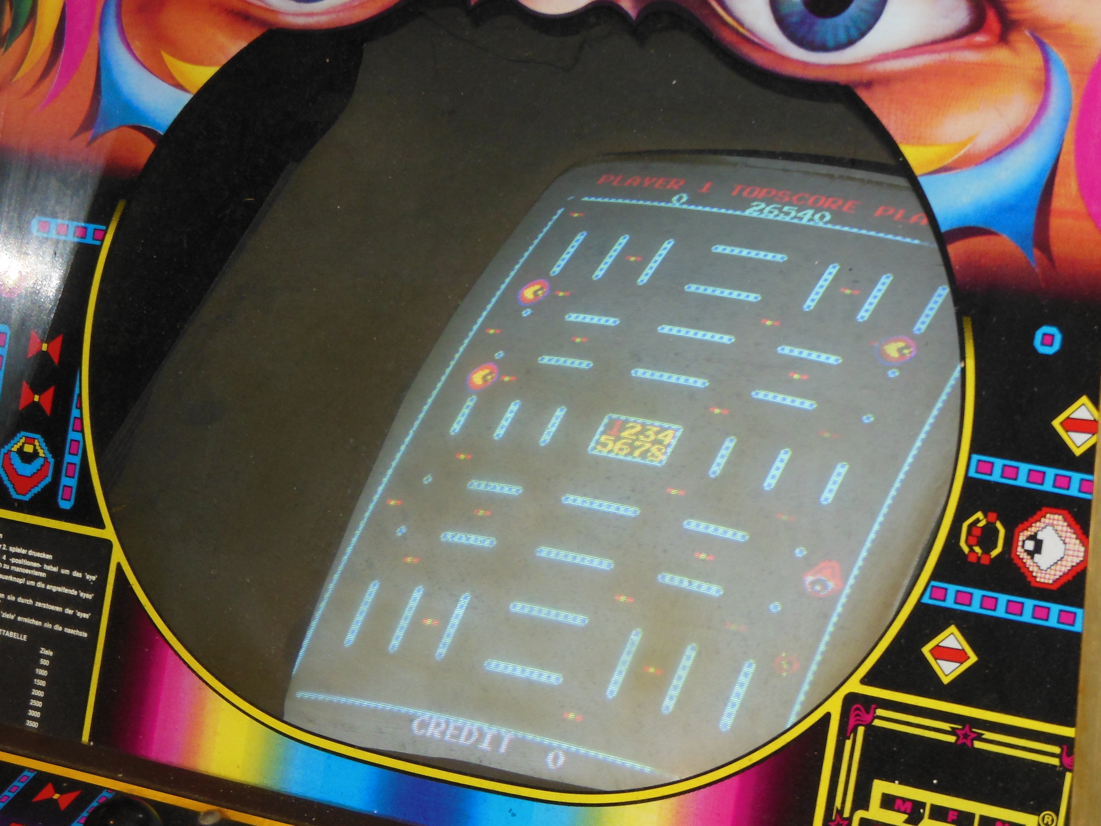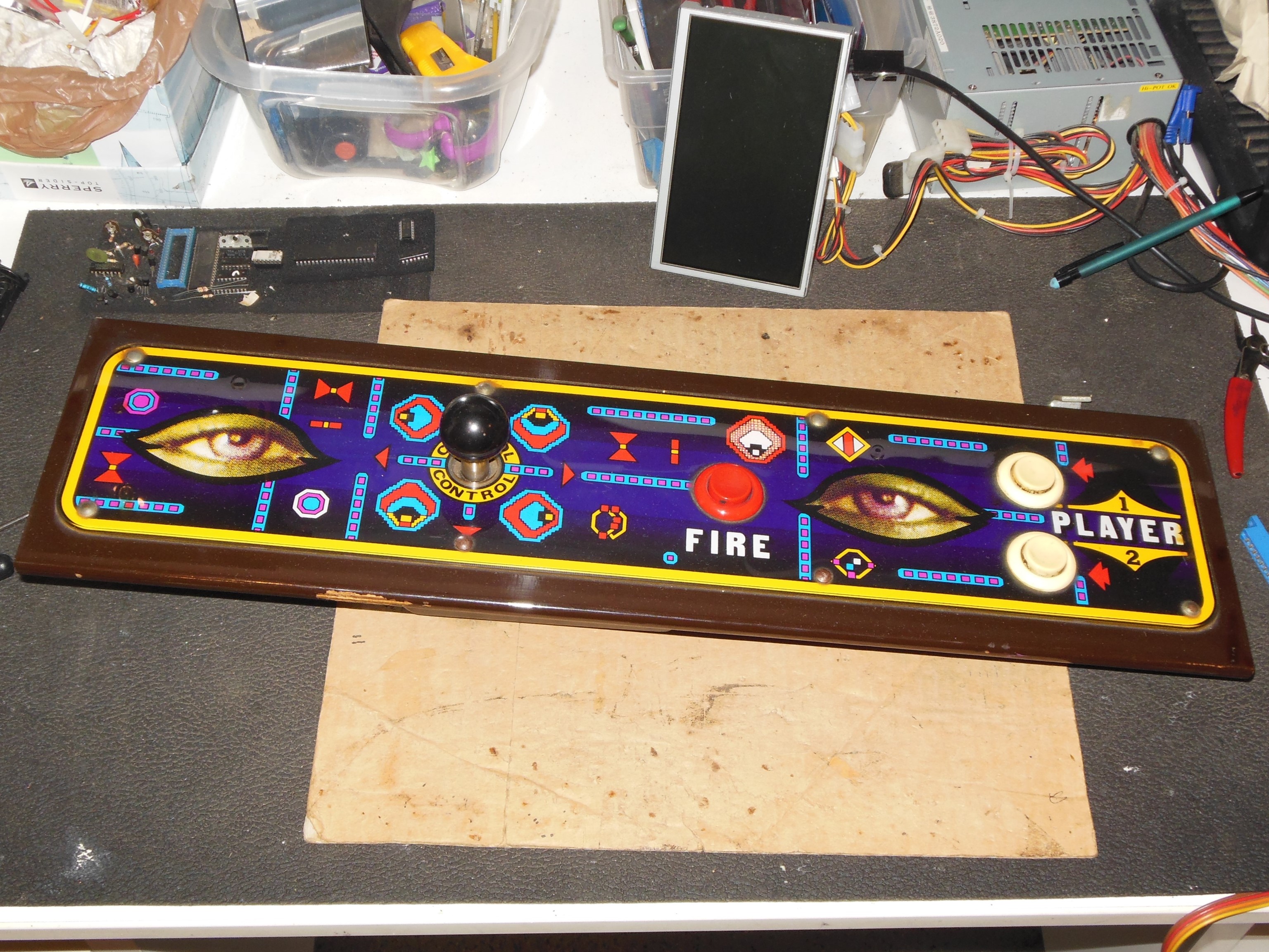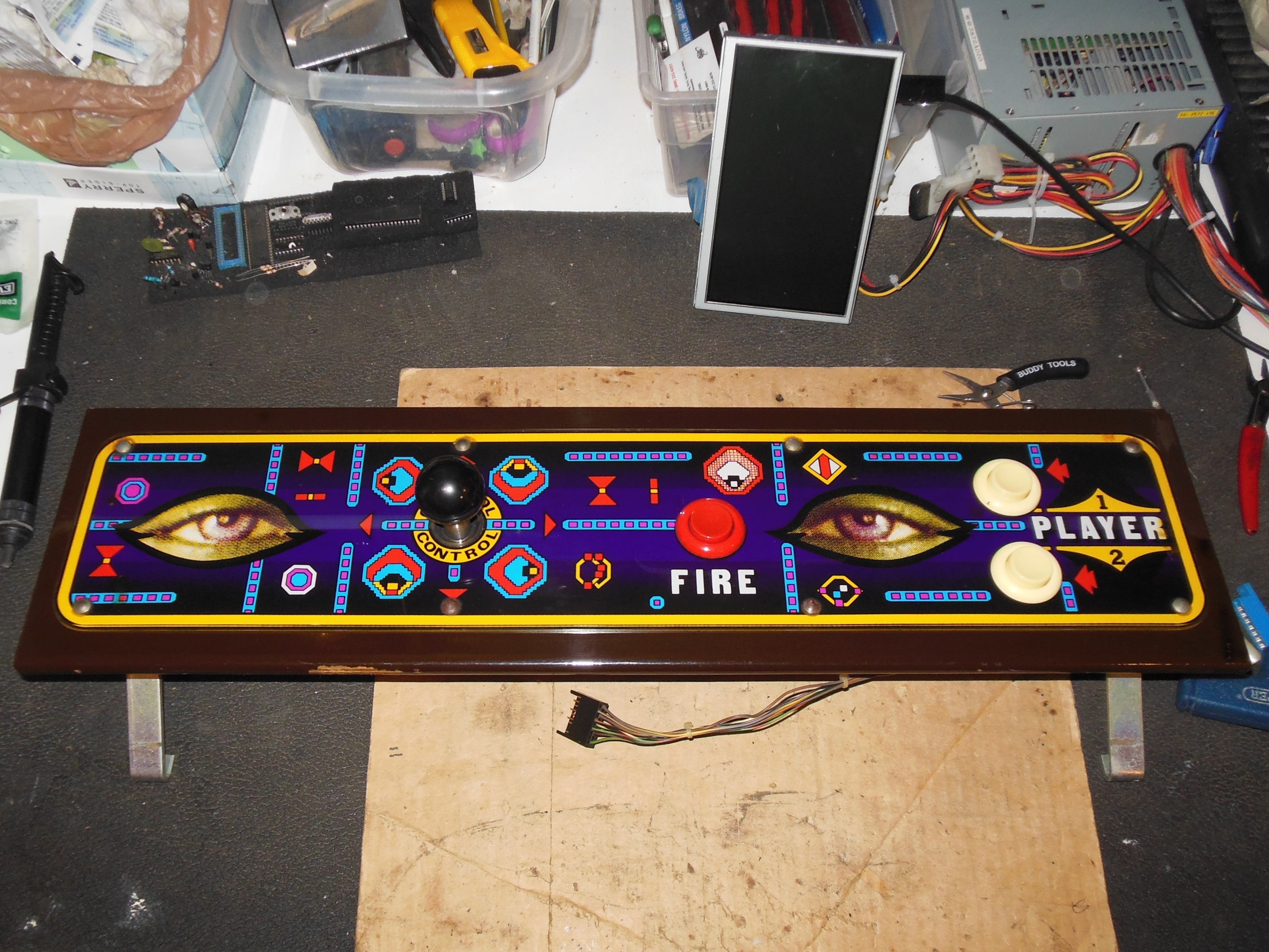 After one final wiring power check, the Eyes game PCB was fitted and powered on. Both game & monitor powered on OK with a good quality picture underneath the layers of dust & nicotine. The game also coined & played OK with good audio.