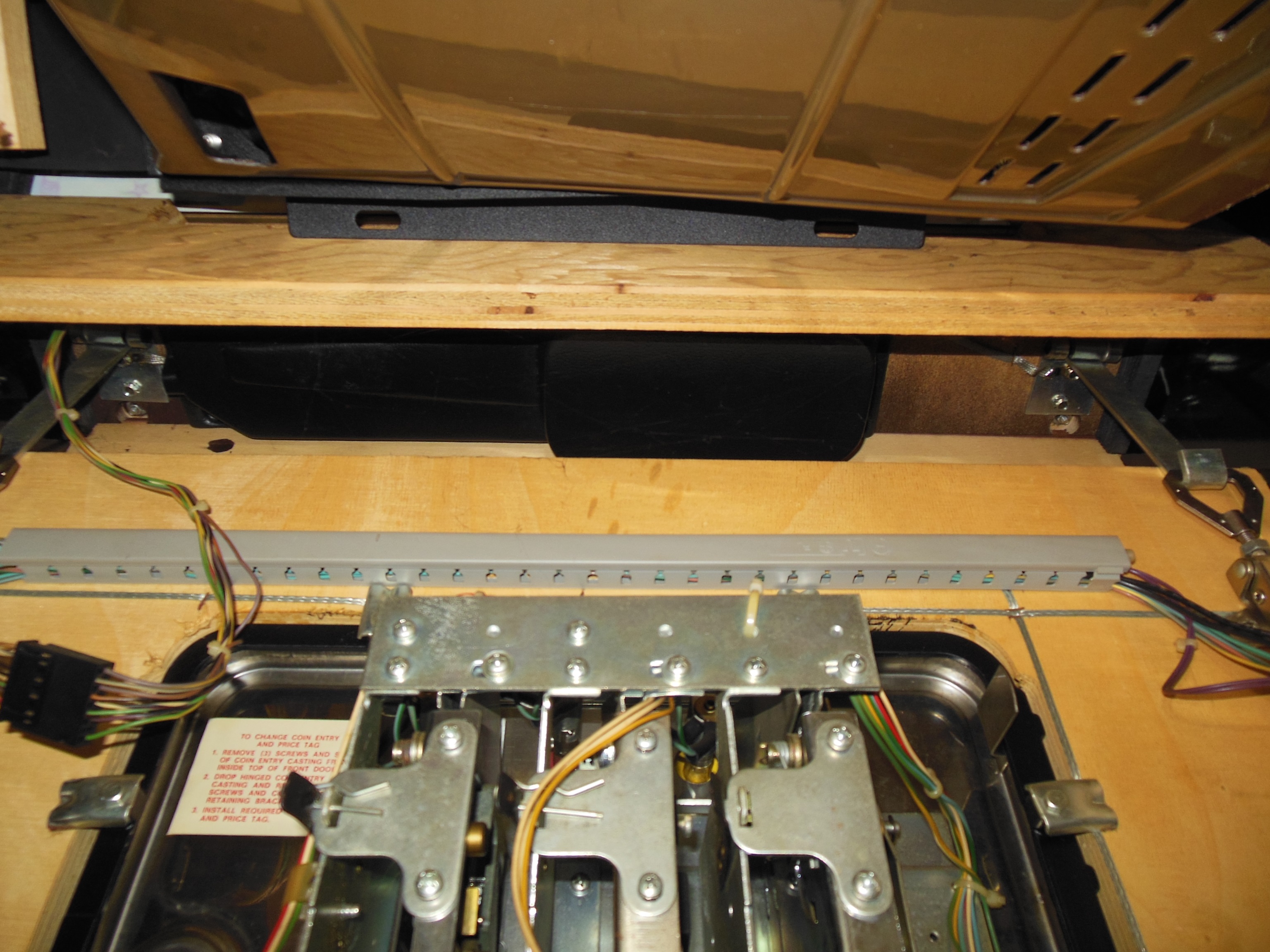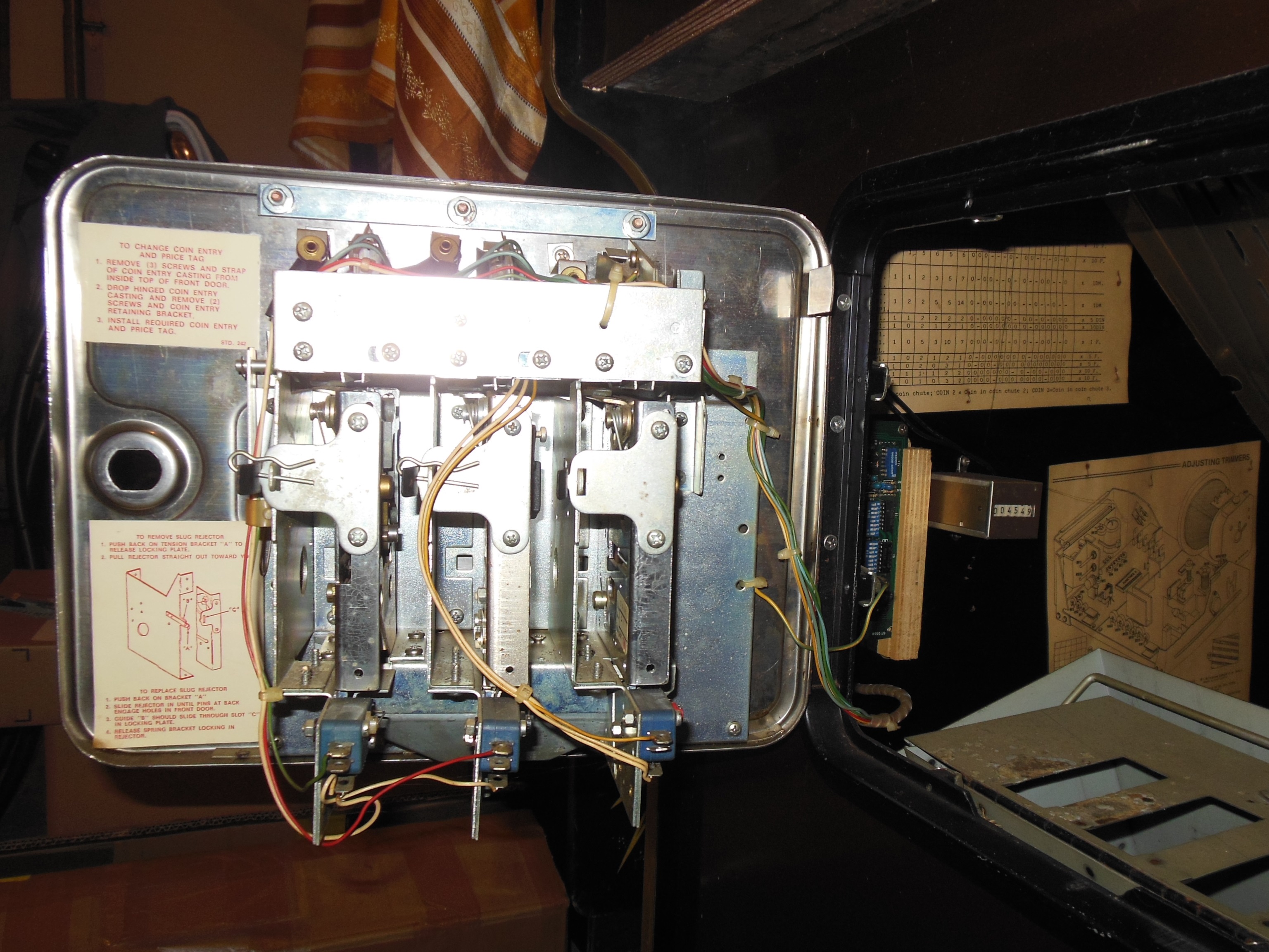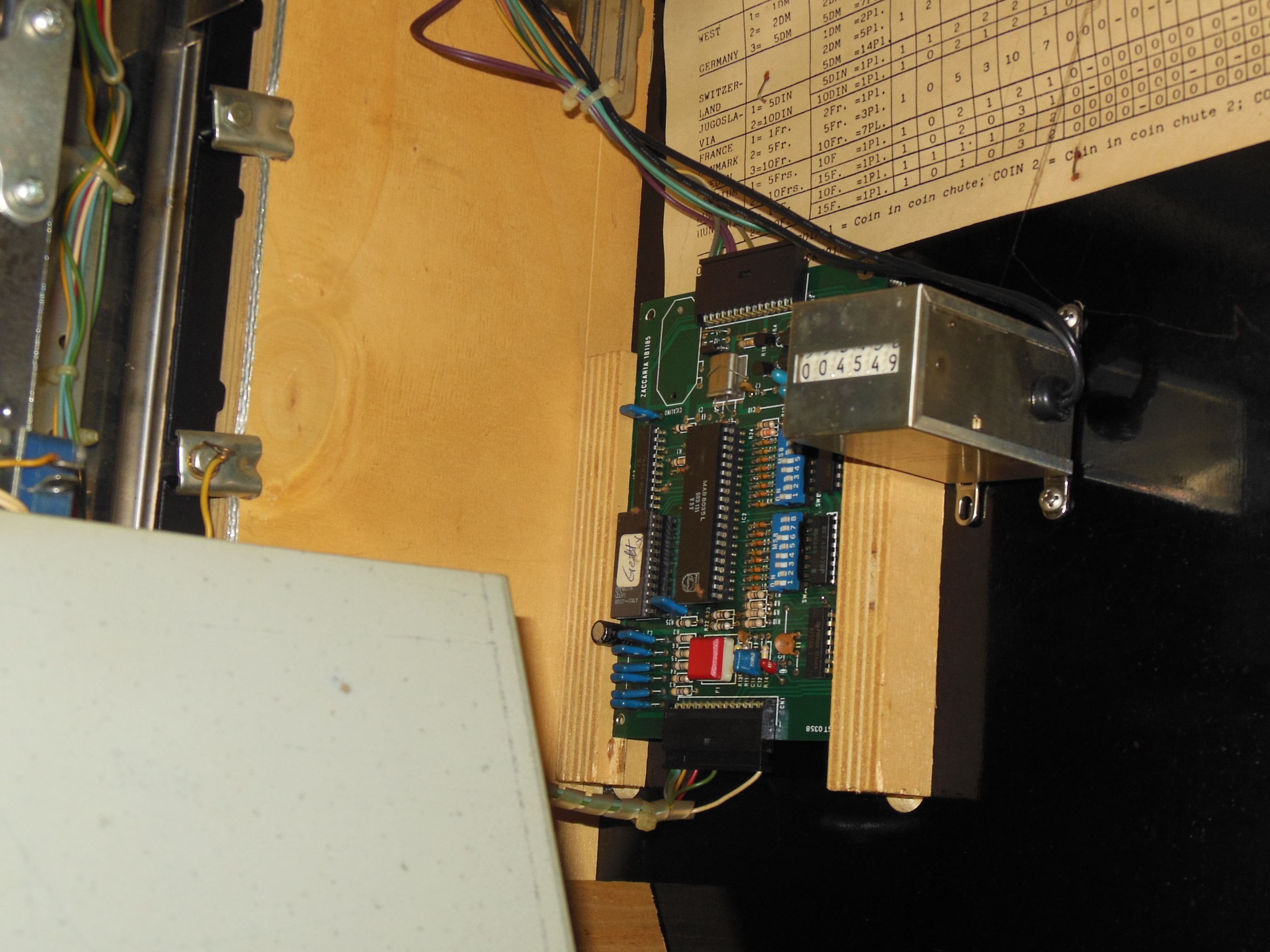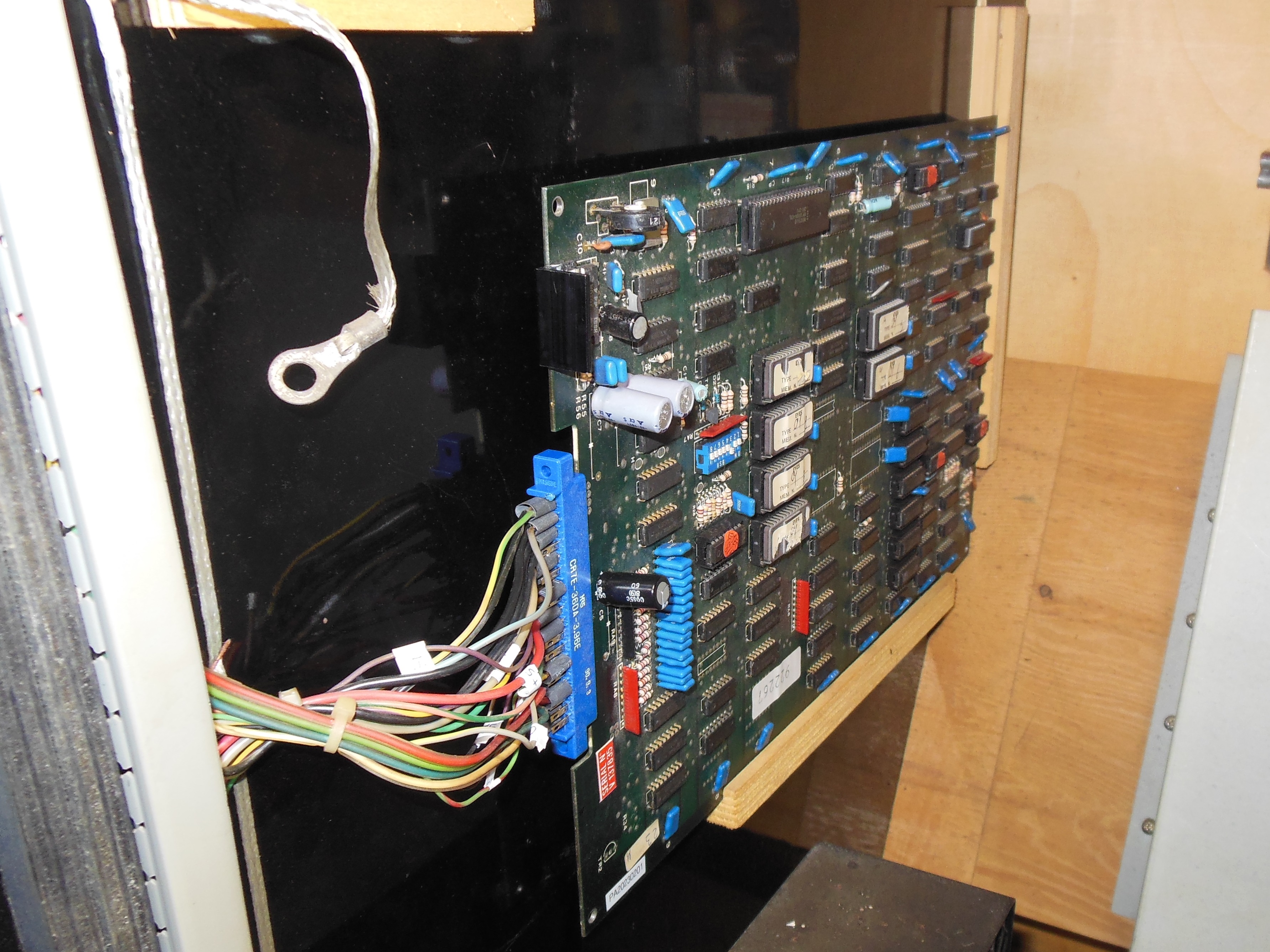 This cabinet was late enough to have the 1B1185 GETT microcontroller-based credit PCB. All the credit PCB and coin door wiring harness looked complete and intact. The control panel also still had its back cover.