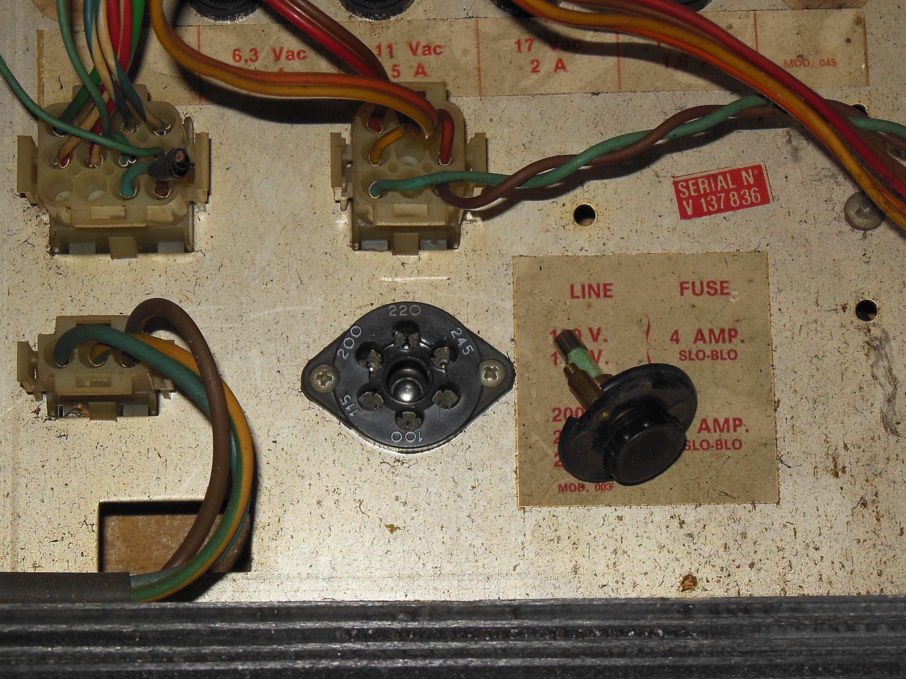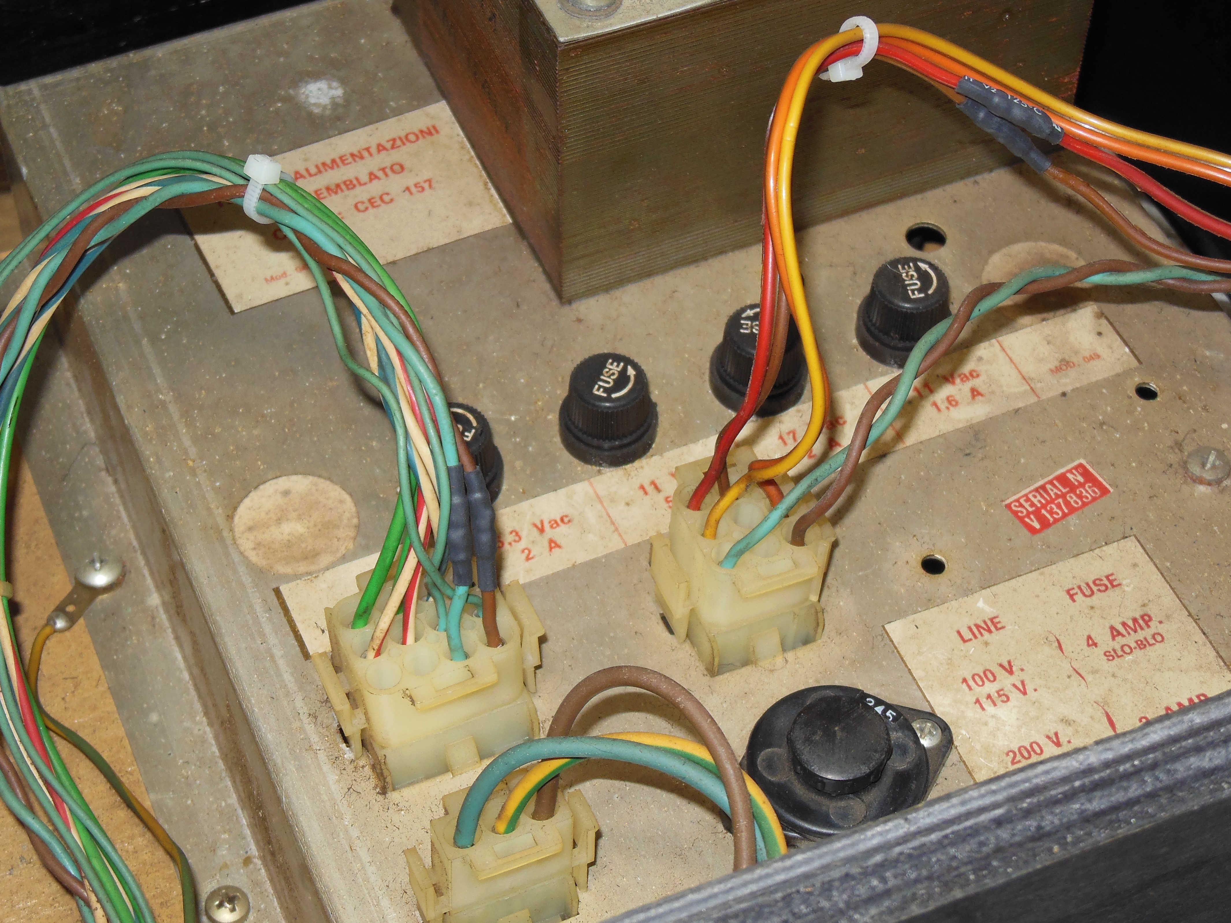 The control panel was in good condition, just some small cigarette burns and nicotine dirt to clean up. Under the back cover the wiring was complete and intact.