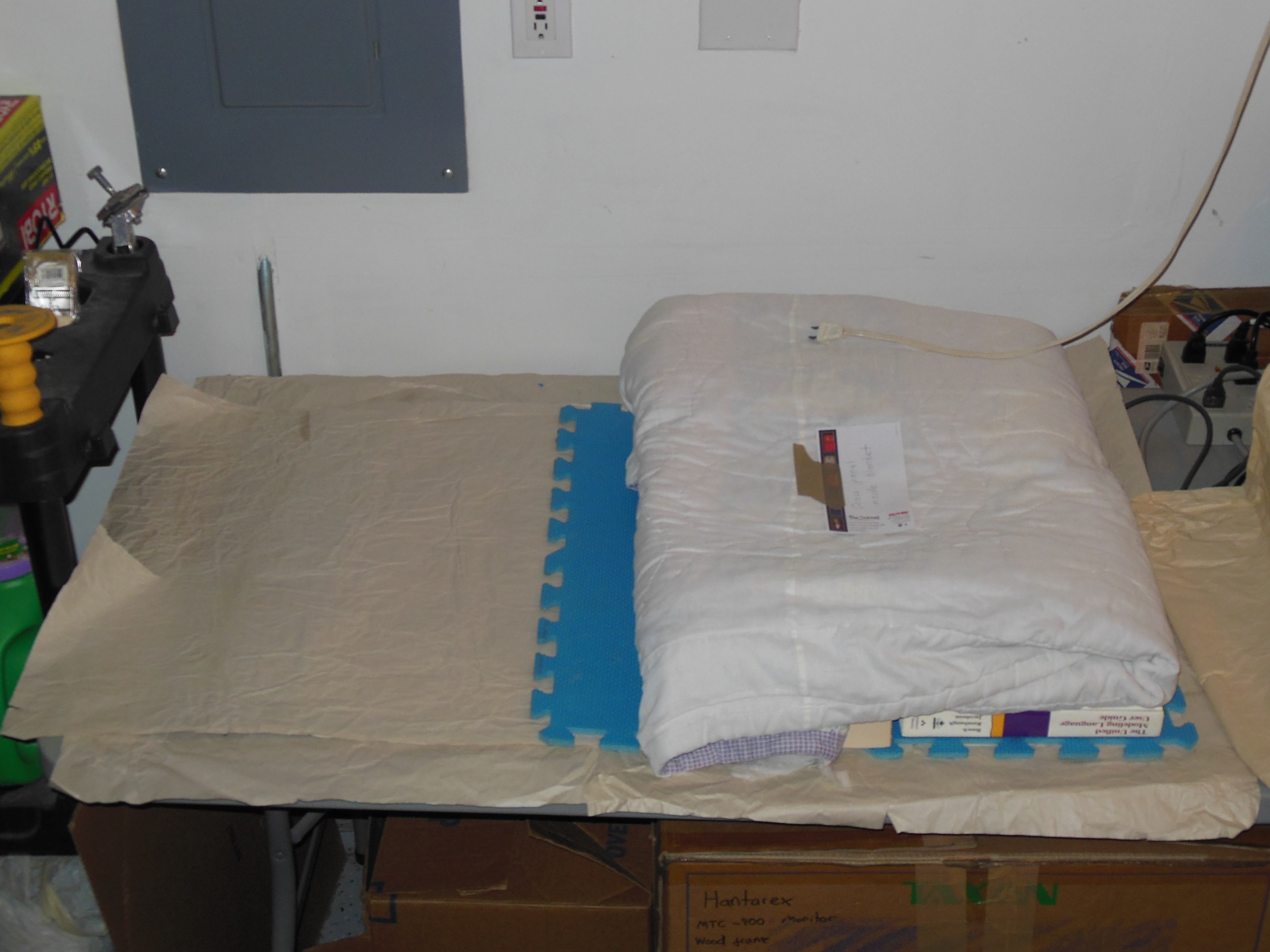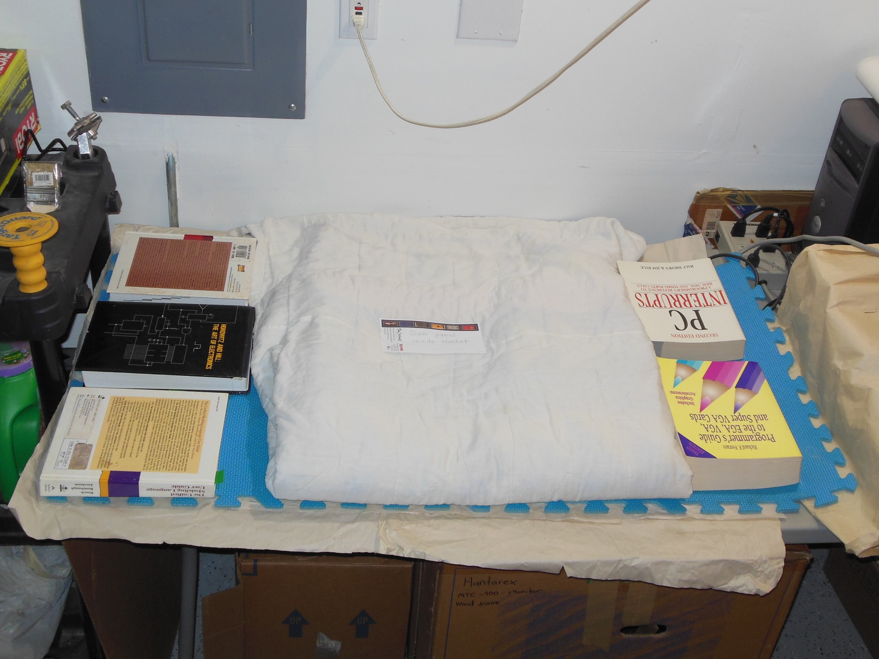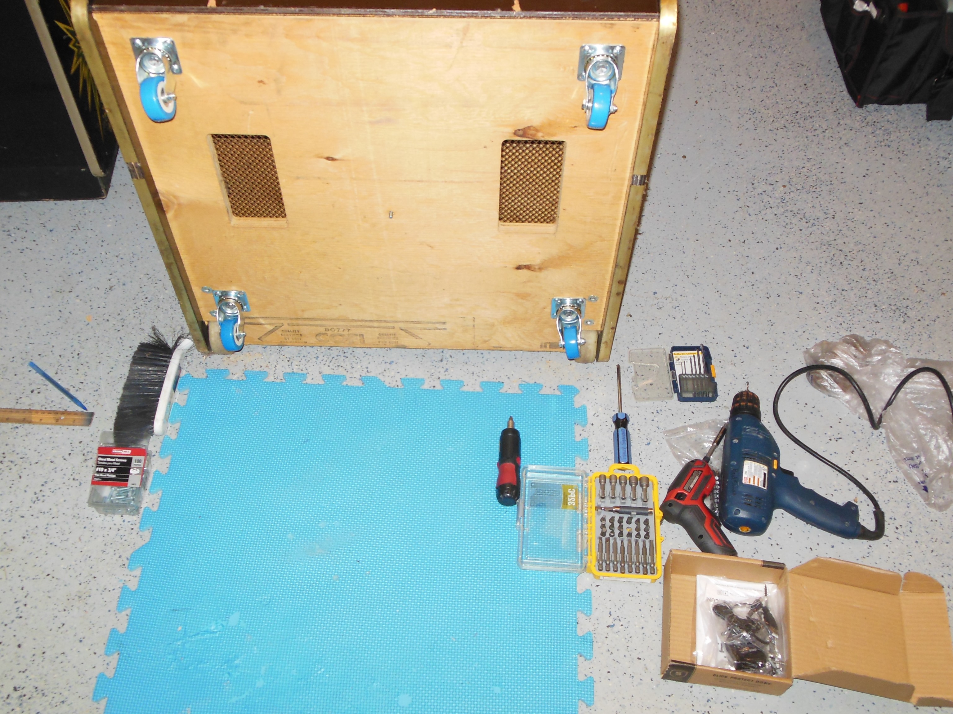 The control panel, monitor glass and marque were removed to allow the surround staples to be pulled out and the surround removed. After a wiped down cleaning with a damp cloth, the surround was set to flatten out.
