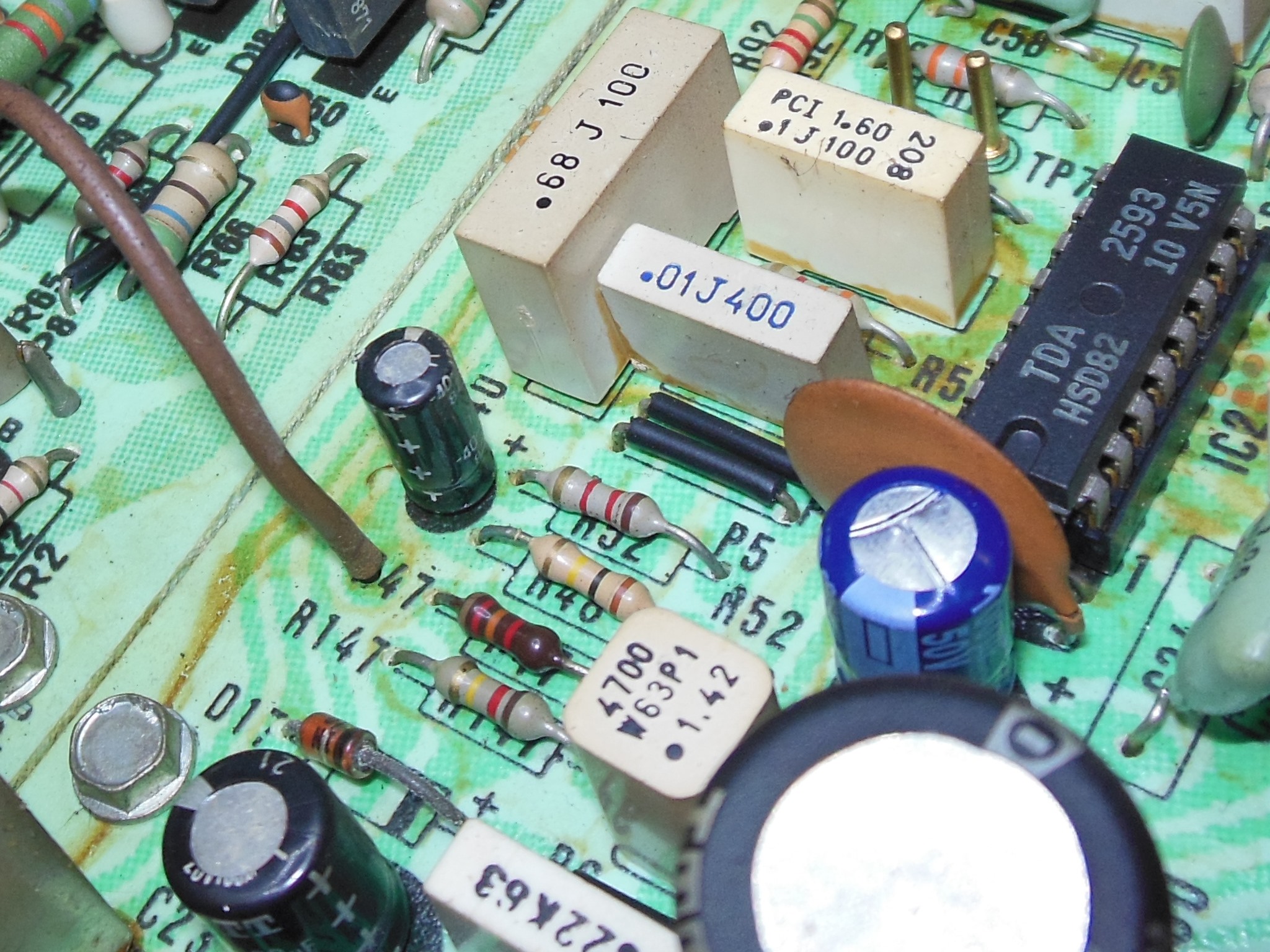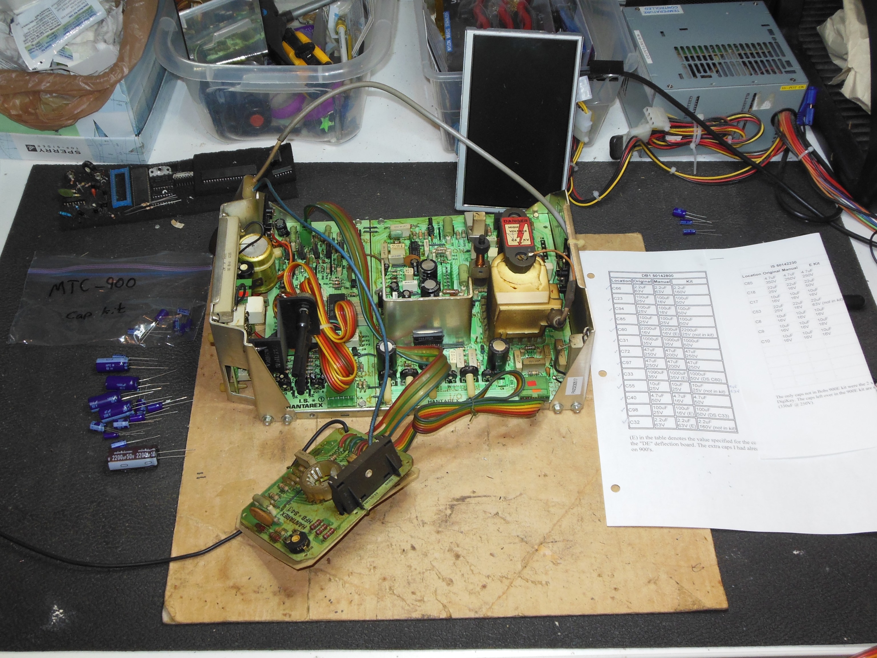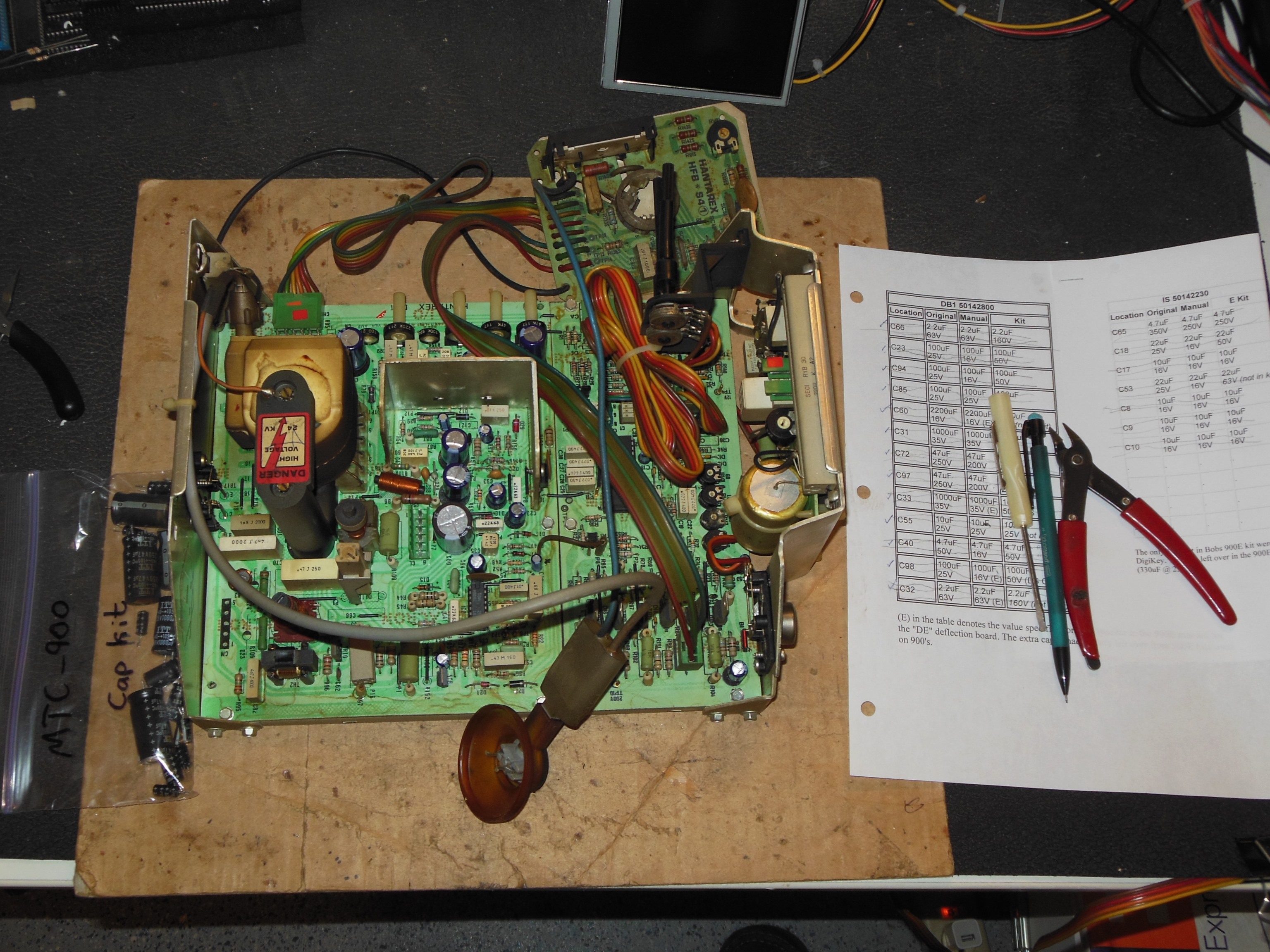 A cap kit was fitted to the Hantarex MTC-900 chassis during which I noticed that there was a mistake on this version of the deflection PCB - capacitor C40 "+" was incorrect that I cross checked with the schematic and then updated the PCB with a marker.