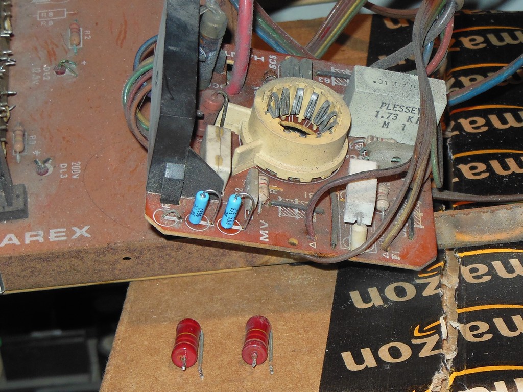 Having previously finished working on the MTC-90 in the Sea Scare and discovering that the focus voltage arcs when it's open I checked out the wiring and discrete components in the focus divider on this one. Both 5M Ohm resistors in the focus divider were short circuit (a very unusual failure mode). Having no spares left from the scrap chassis I needed to find some replacements for these, clearly a common failure point on this chassis :(