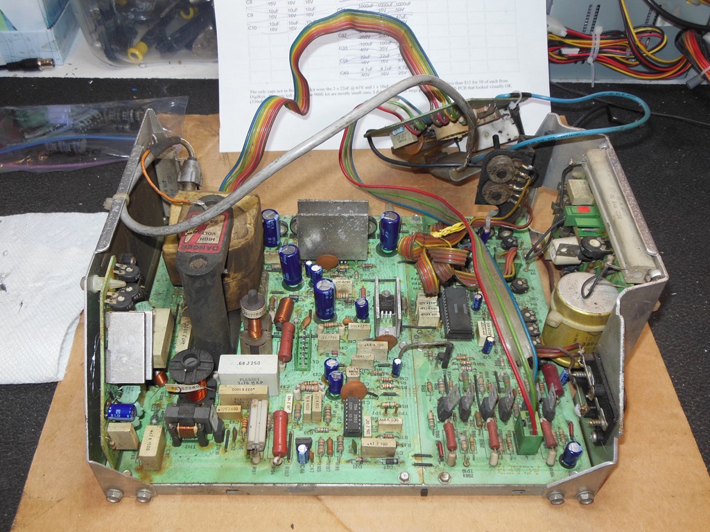 On the bench the 1B1126 power supply board had several loose capacitors due to many dry solder joints on the board. Since I needed to reflow all the capacitors I decided to cap kit the whole power supply.