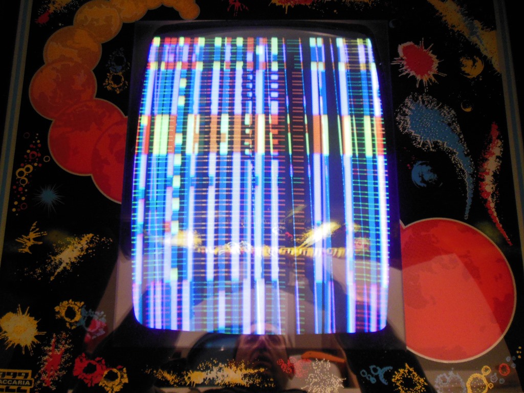 Pre-show testing showed no issues and the game was submitted into the show. However, the picture lost vertical sync and began to roll after a few hours. I tried swapping daughter boards with Astro Wars but even a complete swap of all of them didn't fix the roll. It was withdrawn into the backroom before the show opened.