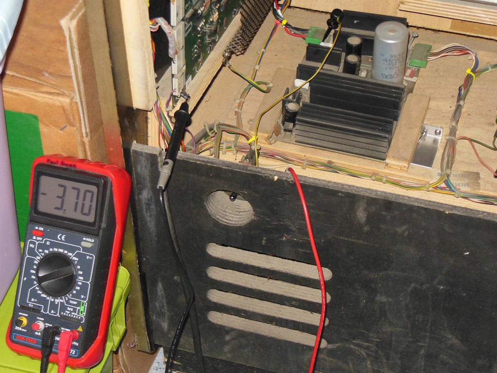 During testing with the original MTC-90 the game stopped booting. Checking out the power supply revealed that the -5V rail was reading only -3.70V indicating a problem with the 1B1126 power regulator board.
