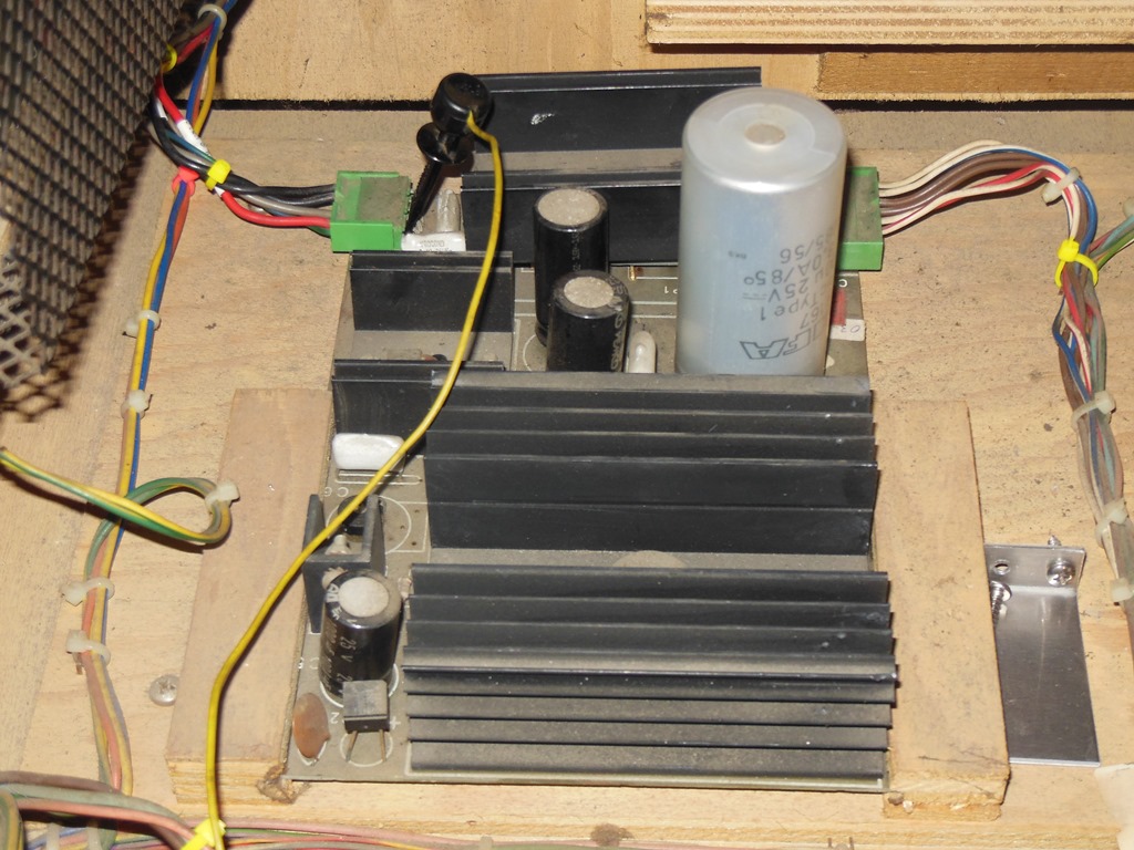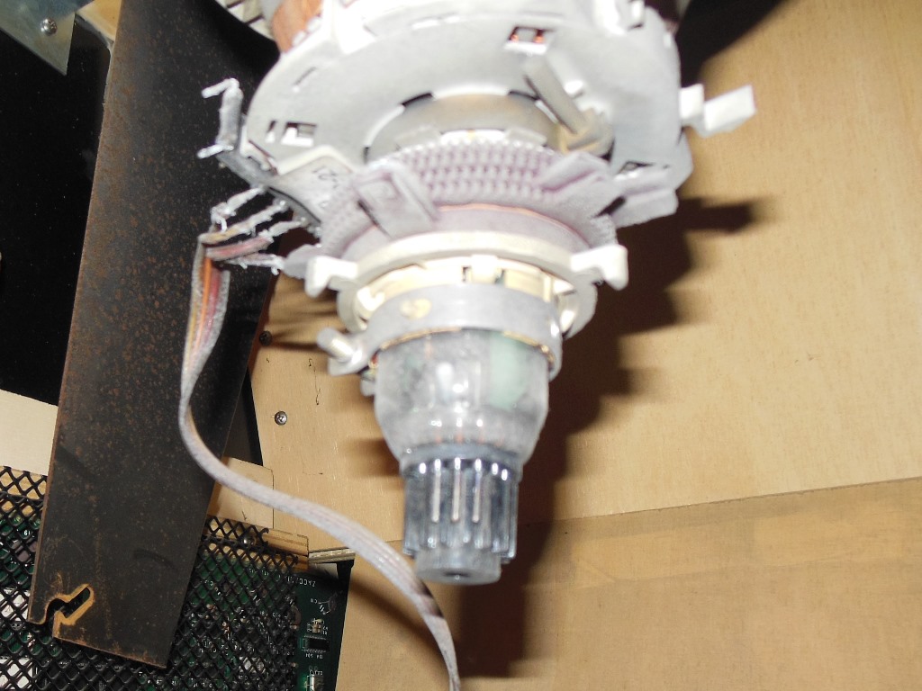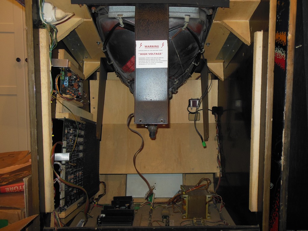 With the chassis out the yoke connector was changed over to an MTC-90 one. Unlike the MTC-90 in Astro Wars this cabinet had a slightly different frame with slots instead of holes to hold the original chassis. The L-brackets for the MTC-900 plate still fit OK, however.