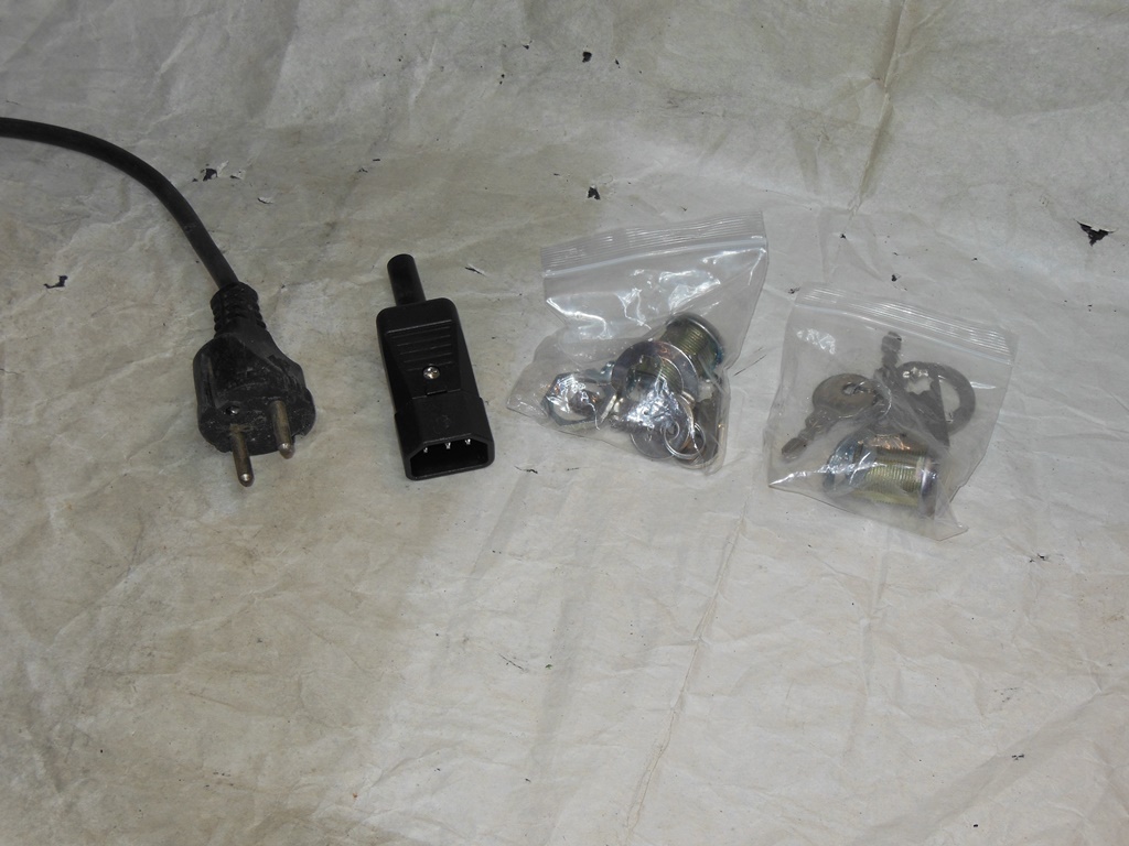 Replaced the European power plug with an IEC-14 for 240V use. The power cord itself was mostly OK except for a scrape that had peeled back part of the outer insulation. I elected to repair it with a heat shrink tubing sleeve since the conductors were unharmed. Also replaced the locks.