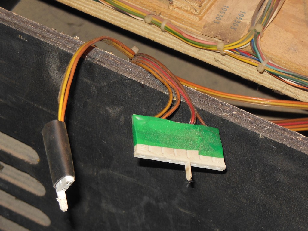 Being of European origin the machine was set for 220VAC. Since I'm using 240VAC I moved over the transformer AC input tap accross one pin to the 245VAC input, leaving the monitor degauss and marque light on the 220VAC tap as designed (the usual supply range is -+ 10% so 220VAC would be 198-242VAC and I measured my warehouse 2-phase at 243VAC making the 245VAC input tap a better choice).