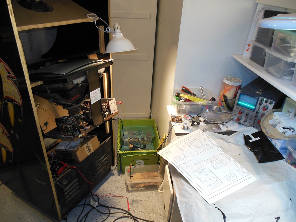 Internally, the game boards were present including the hard-to-find sound board. There has been some hacking of the wiring to the game board and on the power supply wiring. The door interlock switch had also been bypassed. As part of that a lot of the cable zip ties had also been cut off. All minor things but needed tidying up before power on.