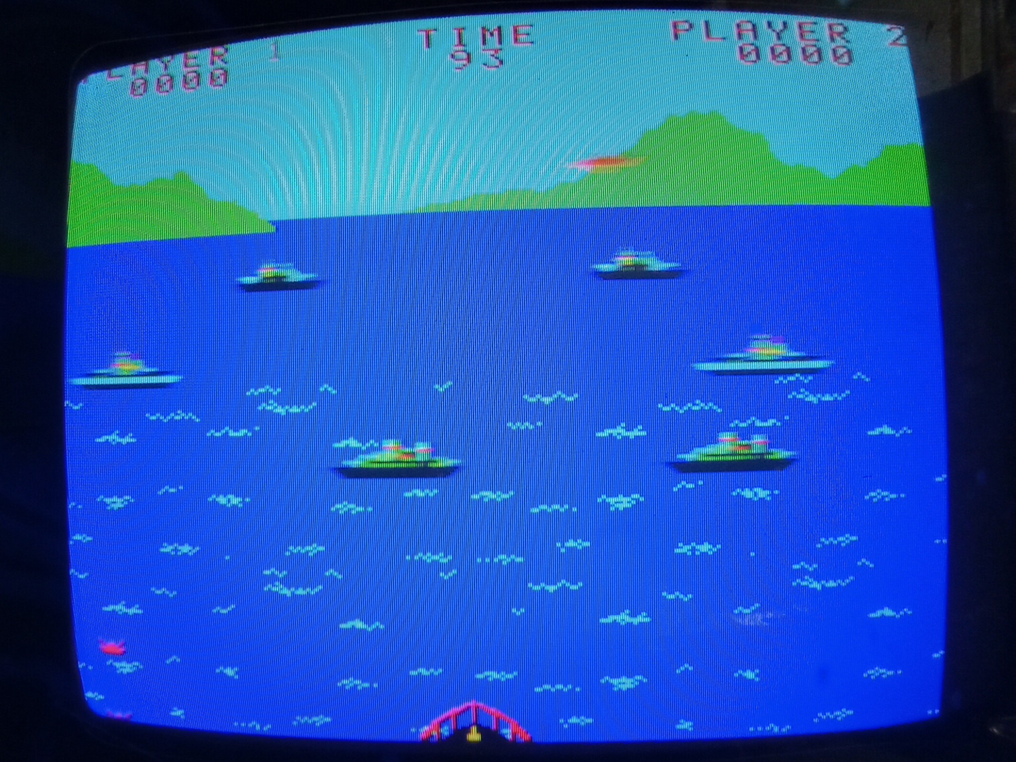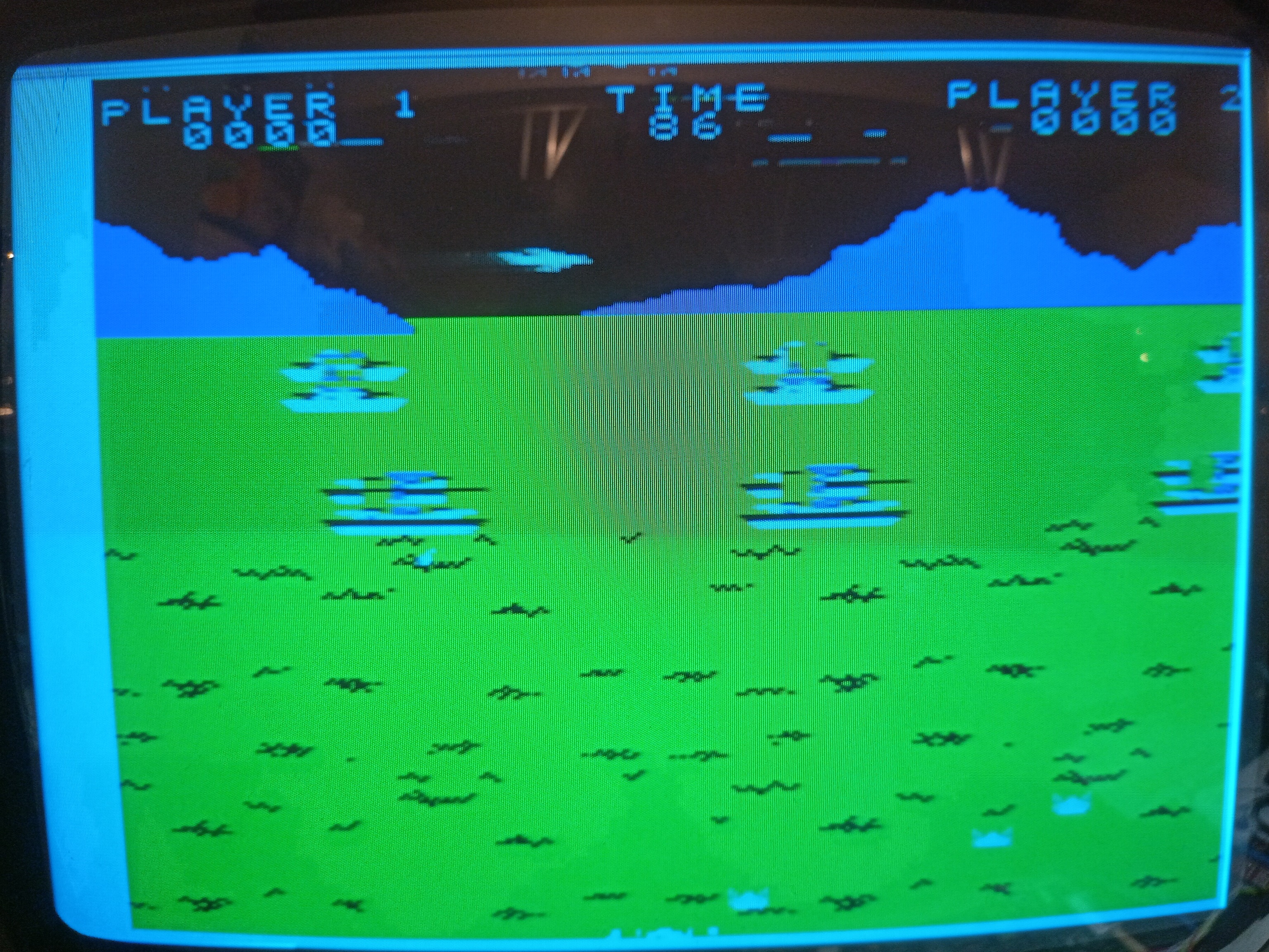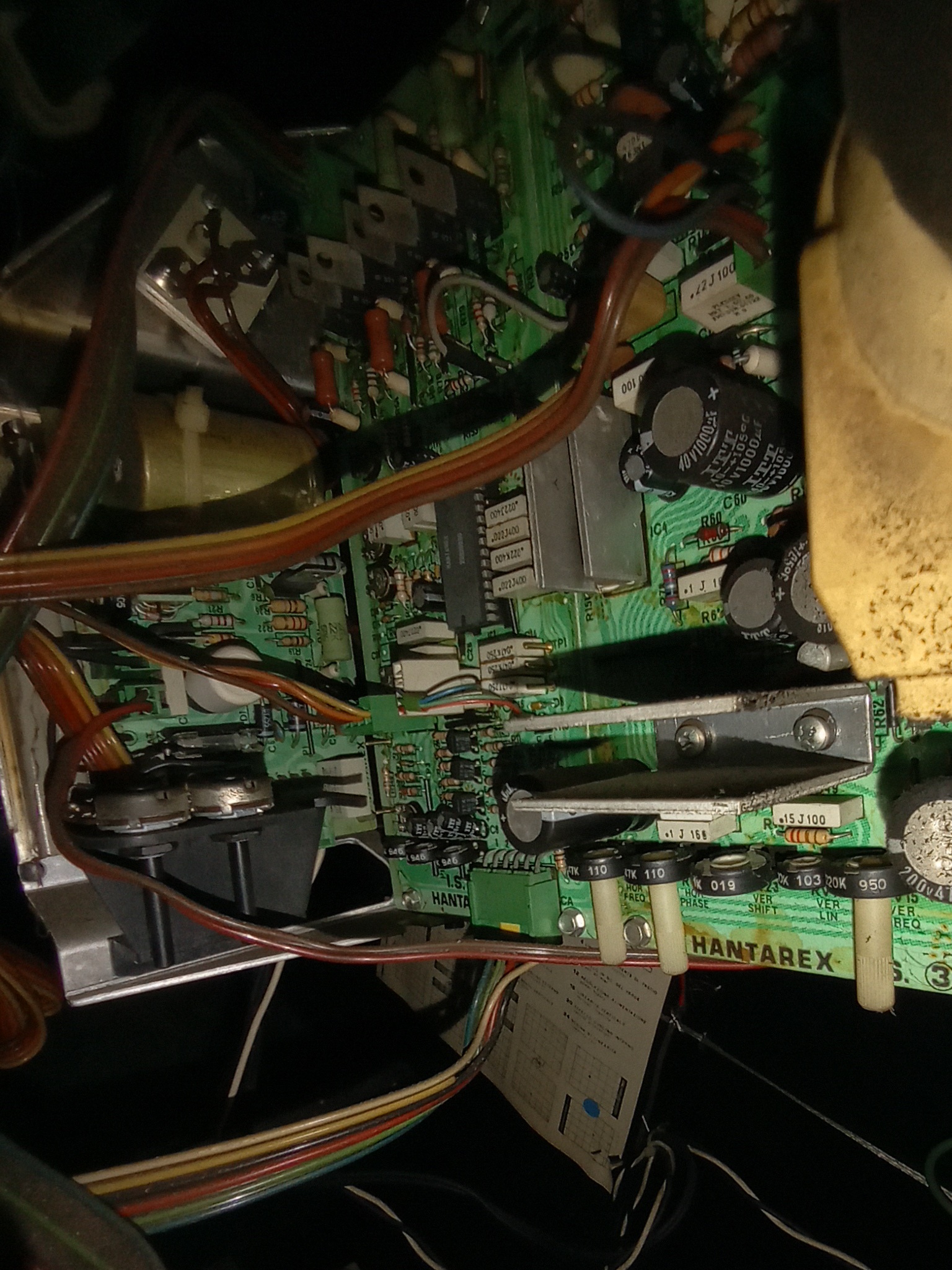 The game PCB on its original mounting plate fit perfectly in the Super Cobra cabinet and the Hantarex MTC-900 was switched over to the inverted video input option by changing a small plug on the chassis. Armada is a horizontal game, but this was good enough to be able to see how it looked and played on an original monitor.