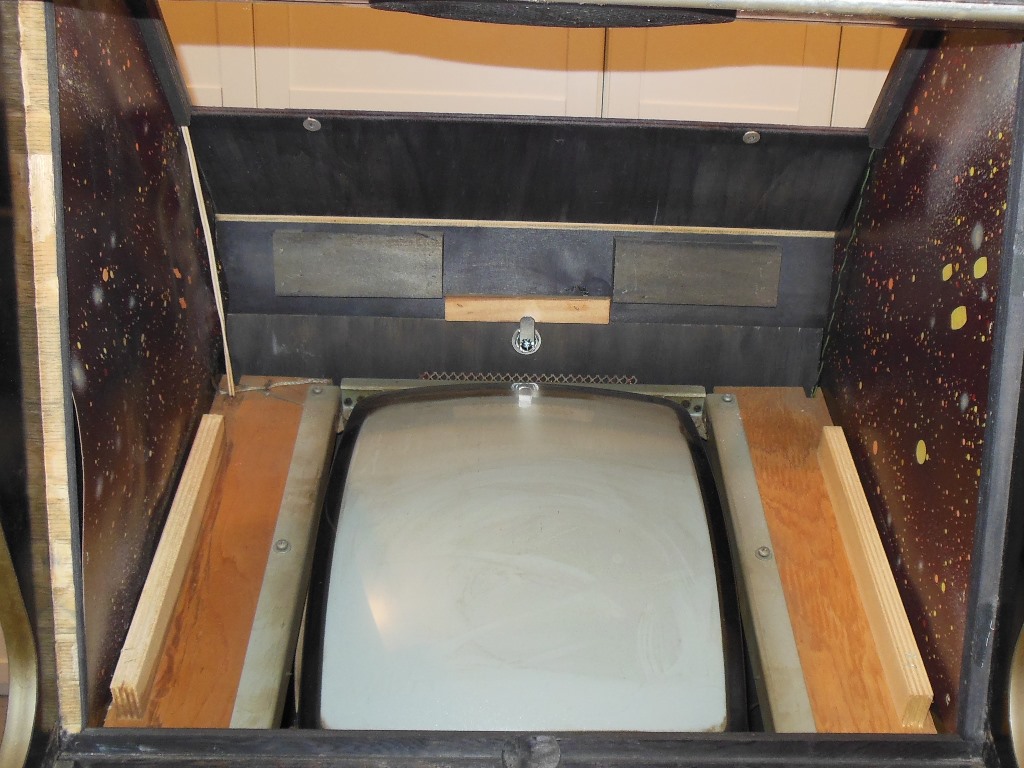 With the surround out the monitor CRT was cleaned. The CRT had some Scramble screen burn consistent with the chassis’ look of a lot of hours use. The picture was crisp and clear.