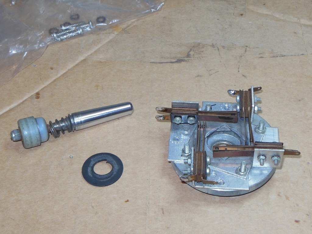 The model racing car springs were AX30200 super soft "red" 3.6lbs/in 12.5mm x 20mm from Liquid RC. The length was a pretty good match but the diameter was slightly larger than the original spring that was 10mm in diameter and 18mm long with 5 coils. The compression seemed pretty close to what was left of the original spring. Luckily, the new larger spring was still just able to squeeze into the socket of the switch bumper. Fully reassembled the shaft centering appeared to be spot on with the new spring :)