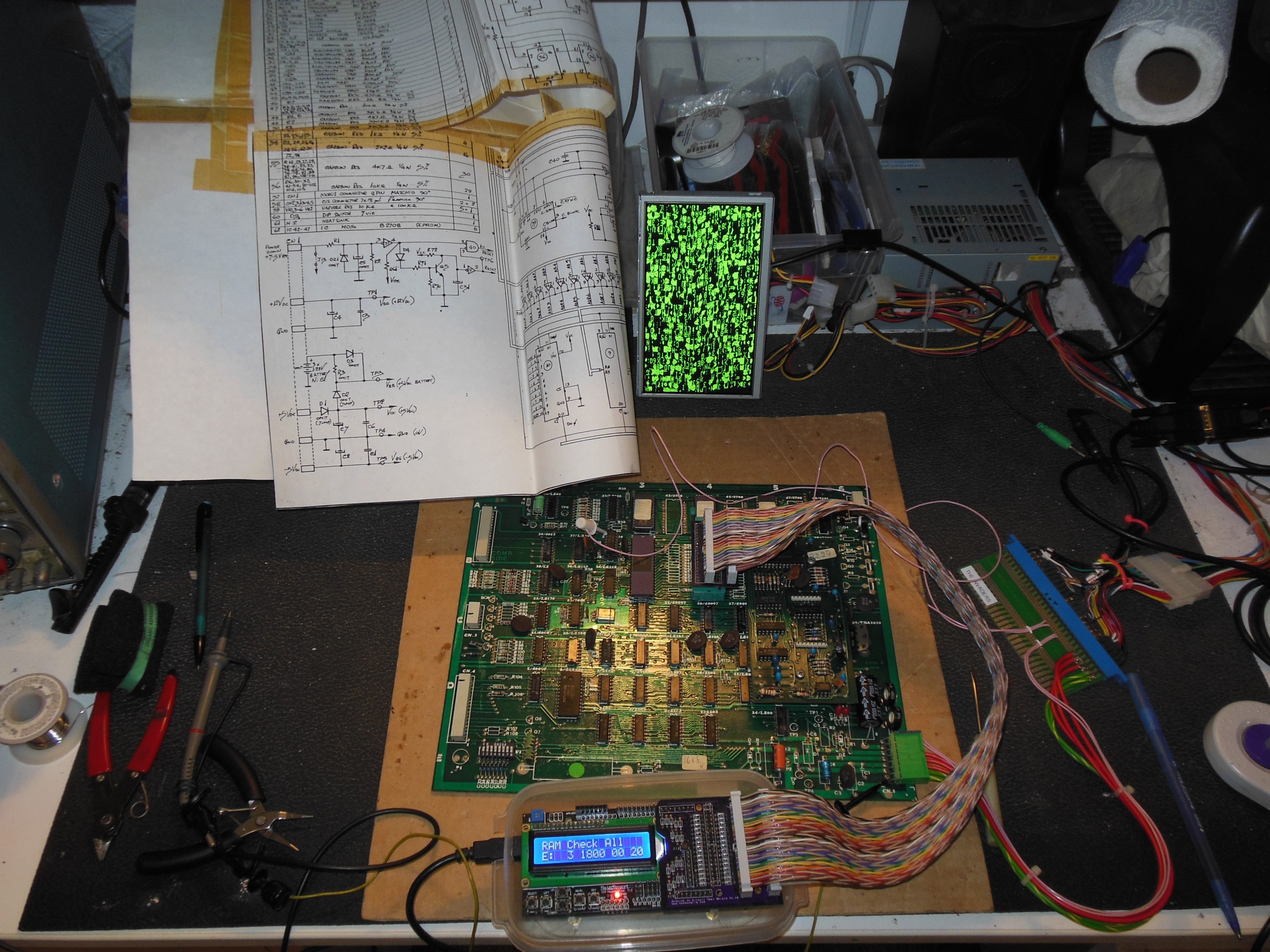 The game almost made it all the way to the finish line. On show day 3 one half of the screen developed graphics corruption and a spare game PCB was swapped in for the remainder of the show.