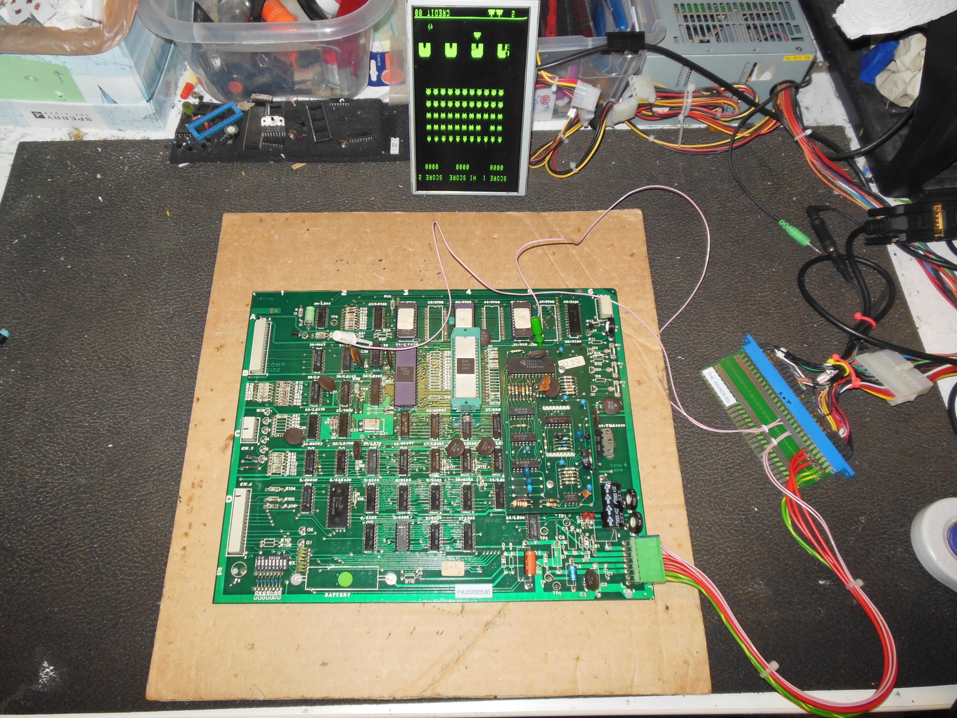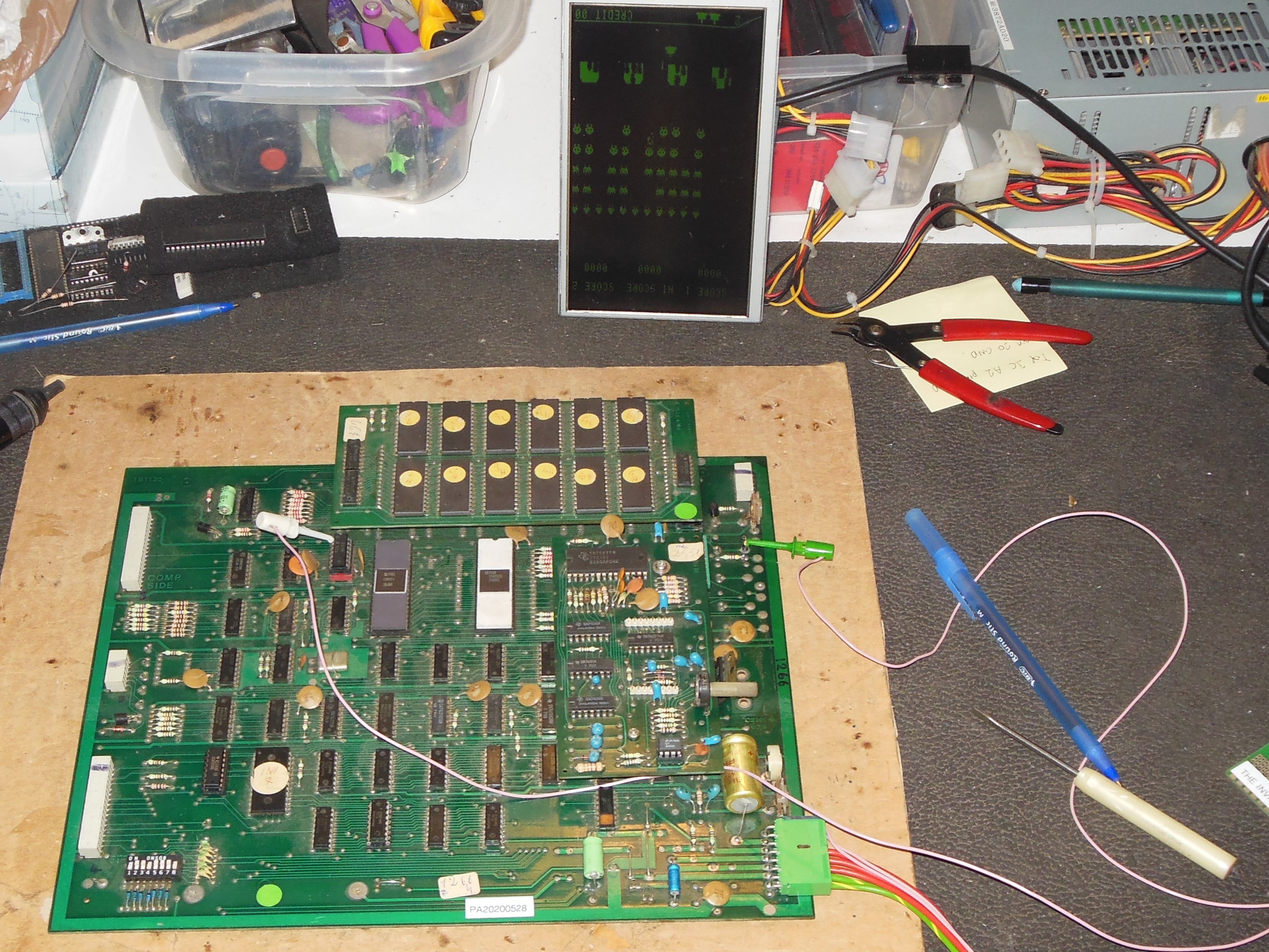 It had been quite a while since I'd had The Invaders on the bench, so I took the opportunity to capture the video signal taps for my JAMMA adaptor for reference. The Invaders native video output is composite, so the taps provide separate sync and video drive instead.