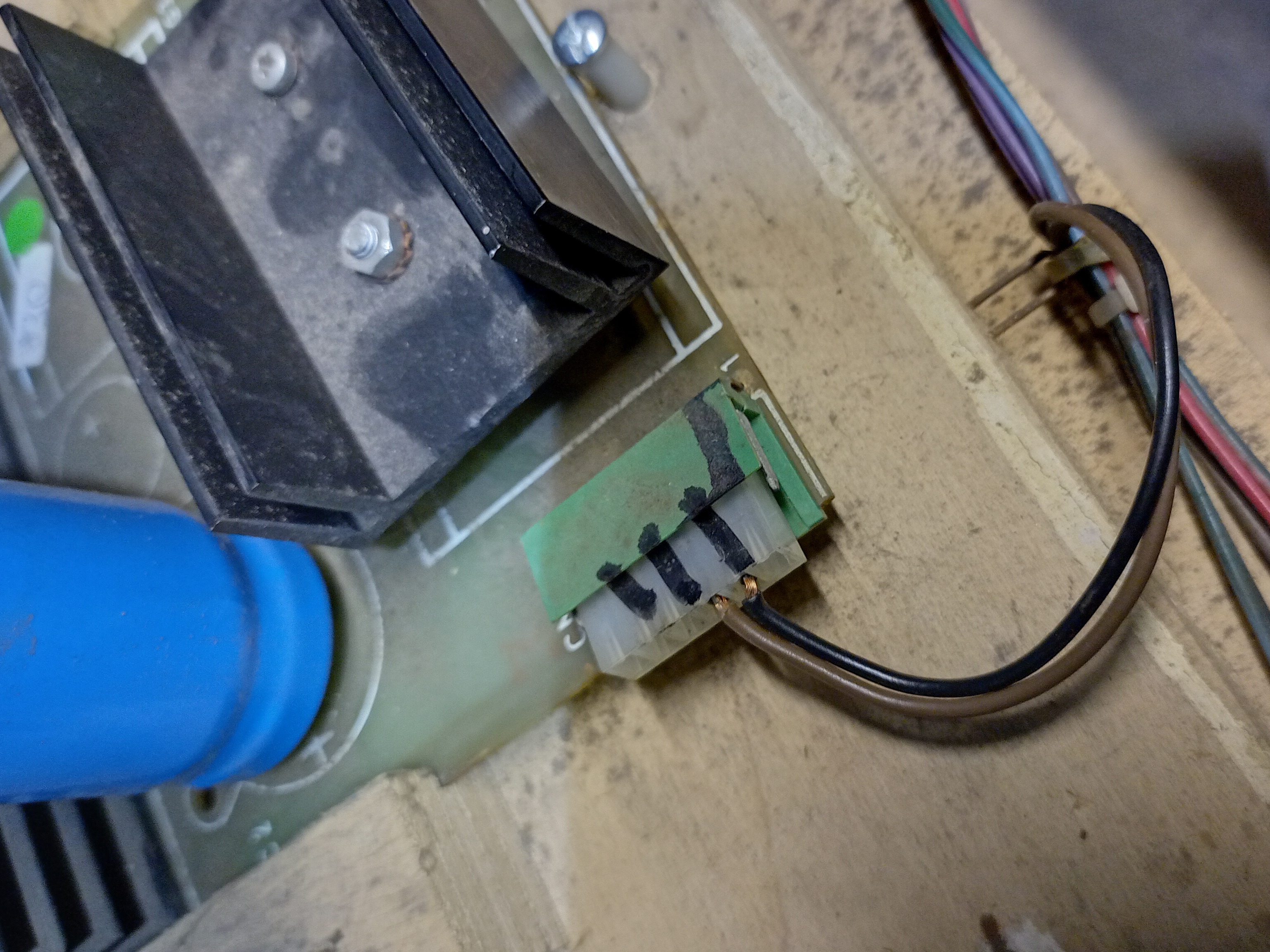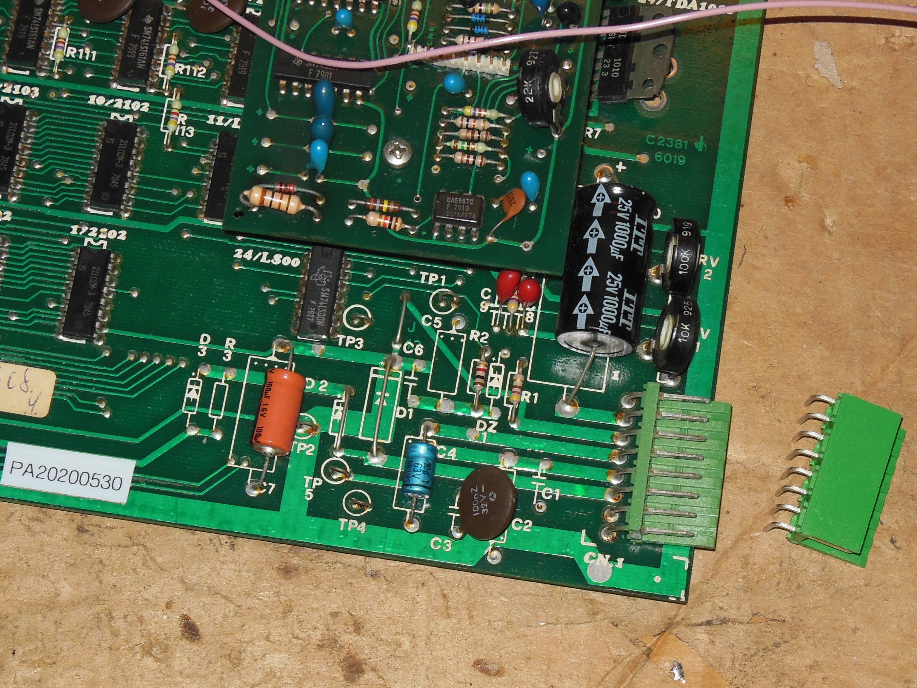 The power plug on this PCB was broken, causing an intermittent voltage drop, and replaced with a new one.