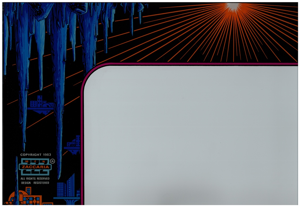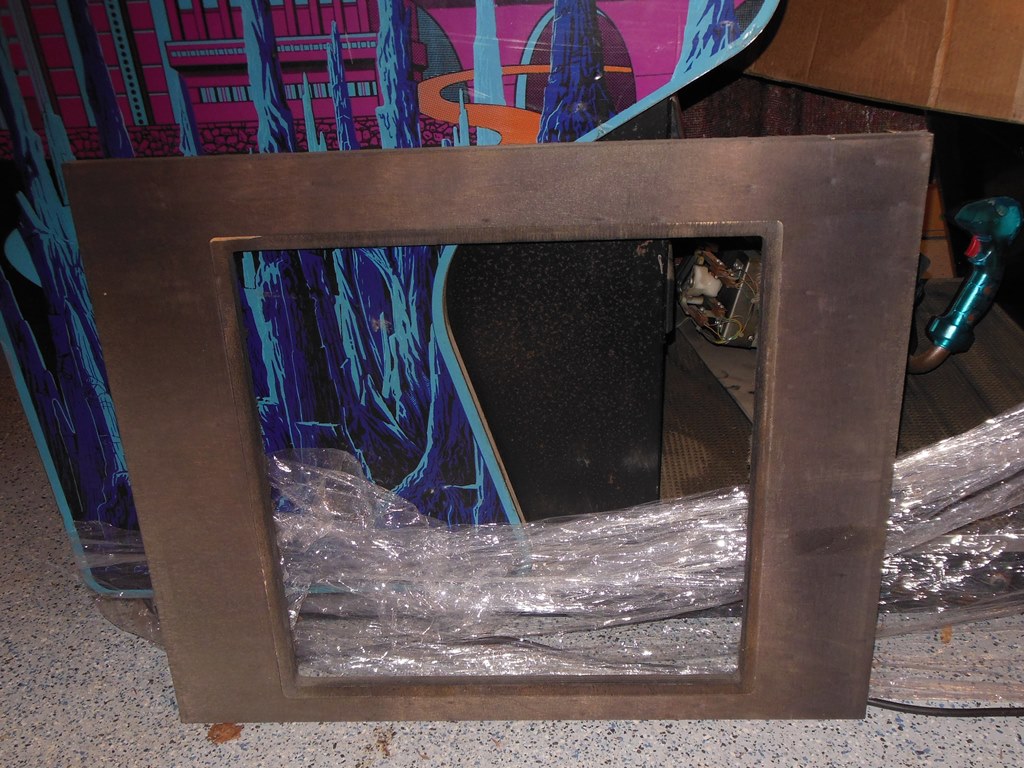 My cabinet had a different control panel molding with two blanking plates on either side that covered optional cutouts for additional controls. On the left there was a home made looking blanking plate and on the right the blanking plate was missing. The Buck Rogers control panel molding is different and covers the full length with no blanking plates (the factory Buck Rogers cabinet has no cutouts).