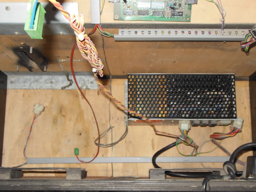 The game PCB needed a small amount of creative footwork to get it mounted on the plate in such a way as to not foul the plate guide in the cabinet. Once completed it fitted fine in the cabinet.