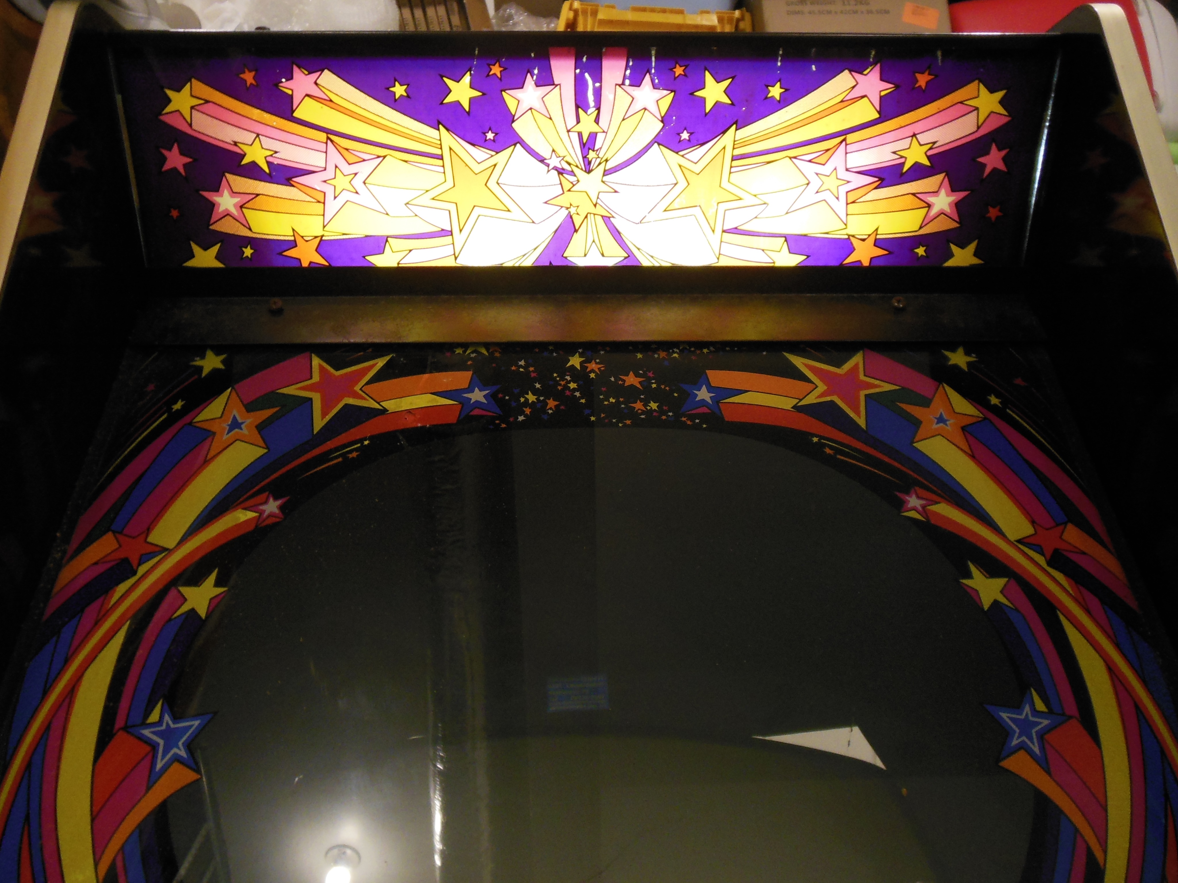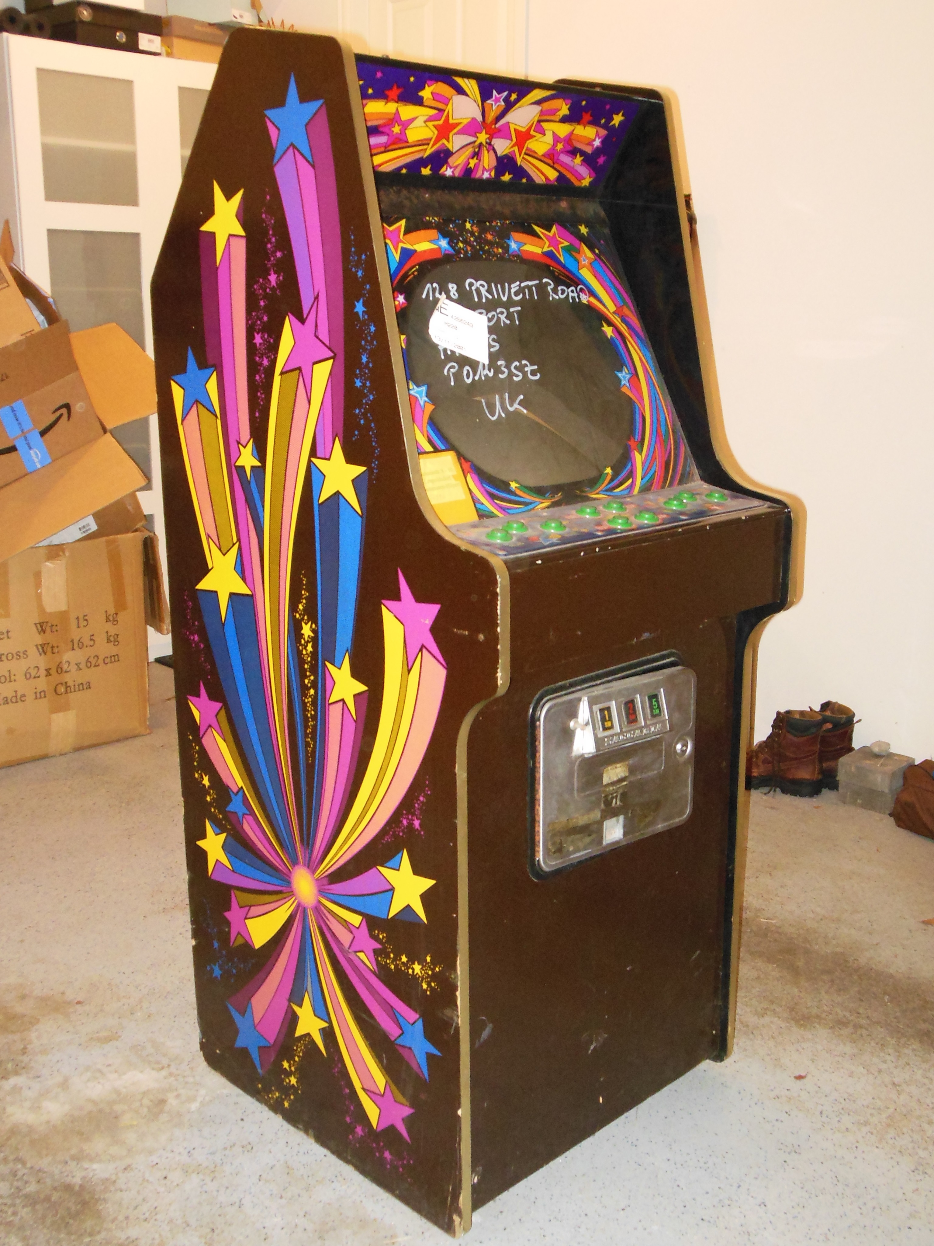 Overall the cabinet was in good & original condition, however there was some flaking of the monitor glass and marque artwork.