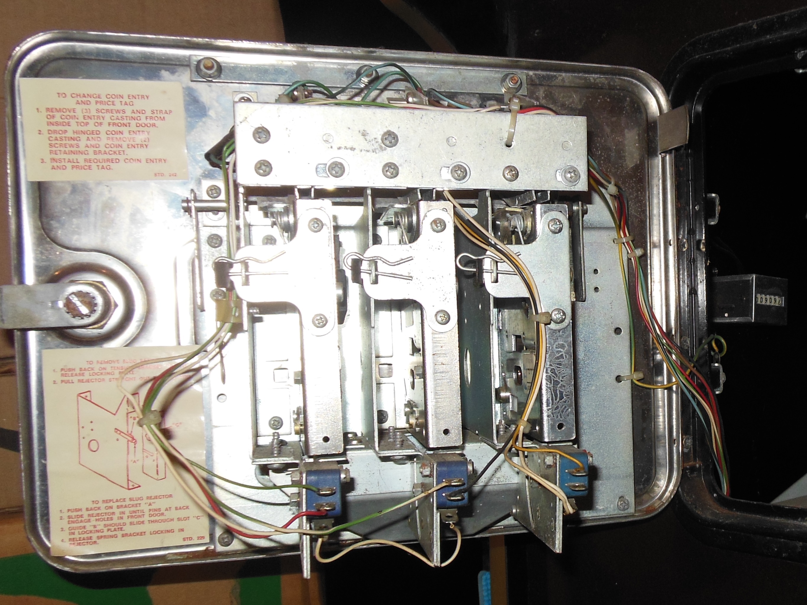 Both coin door and wiring were still in original condition, however the 1B1145 old style credit PCB had been replaced with a 1B1185 new style PCB. The control panel and wiring appeared all original and unhacked.