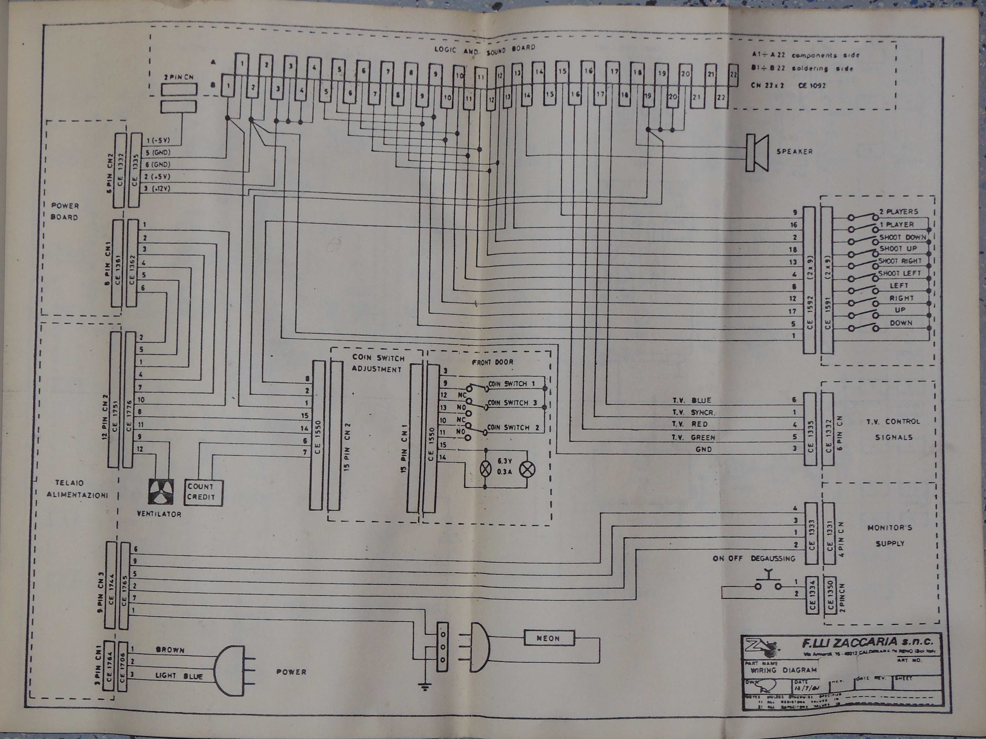 The first step was to work out the control panel pinout of the cabinet edge connector.