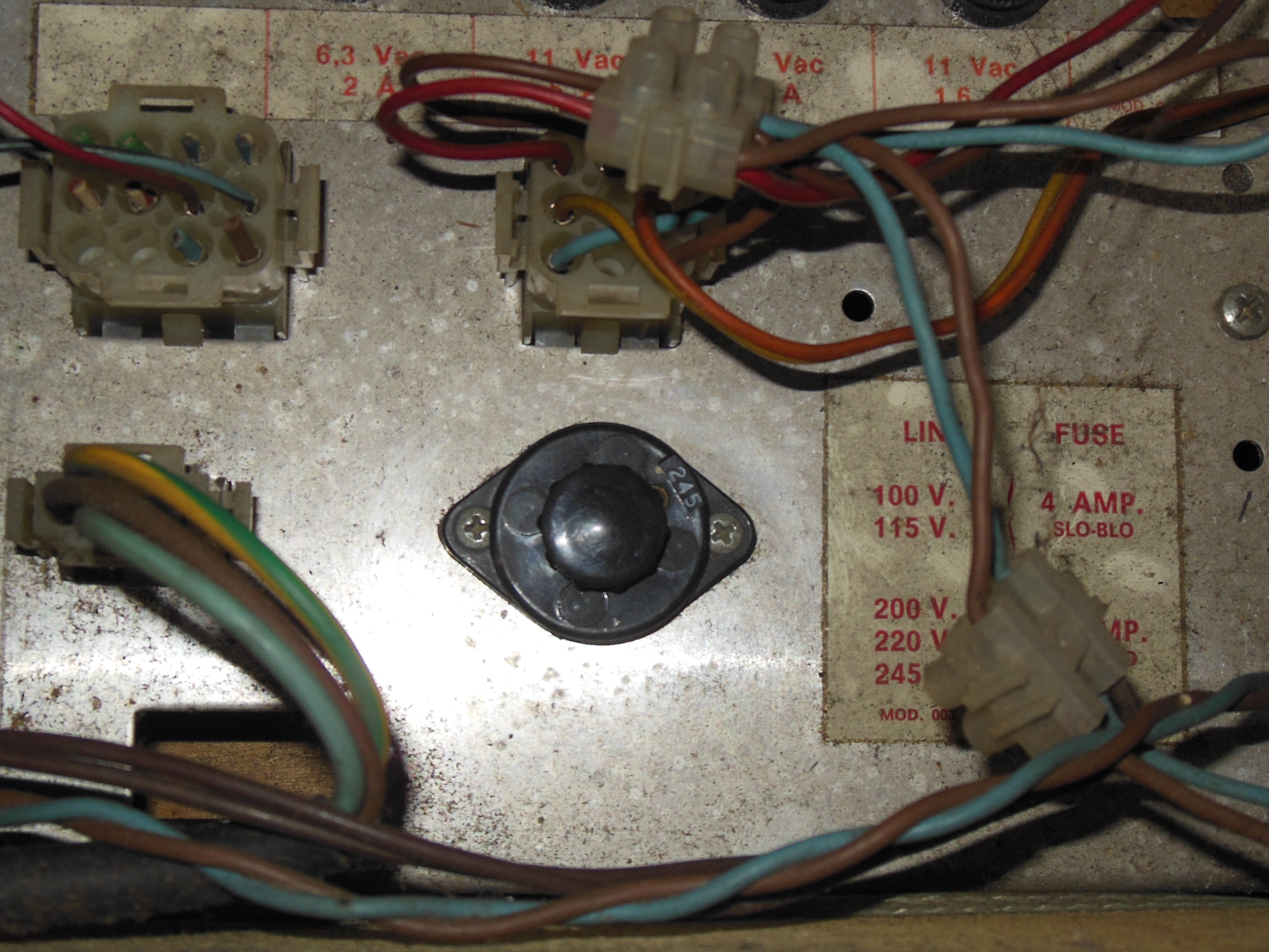 An IEC C14 power plug was fitted and the voltage selector on the transformer block set to 245V.