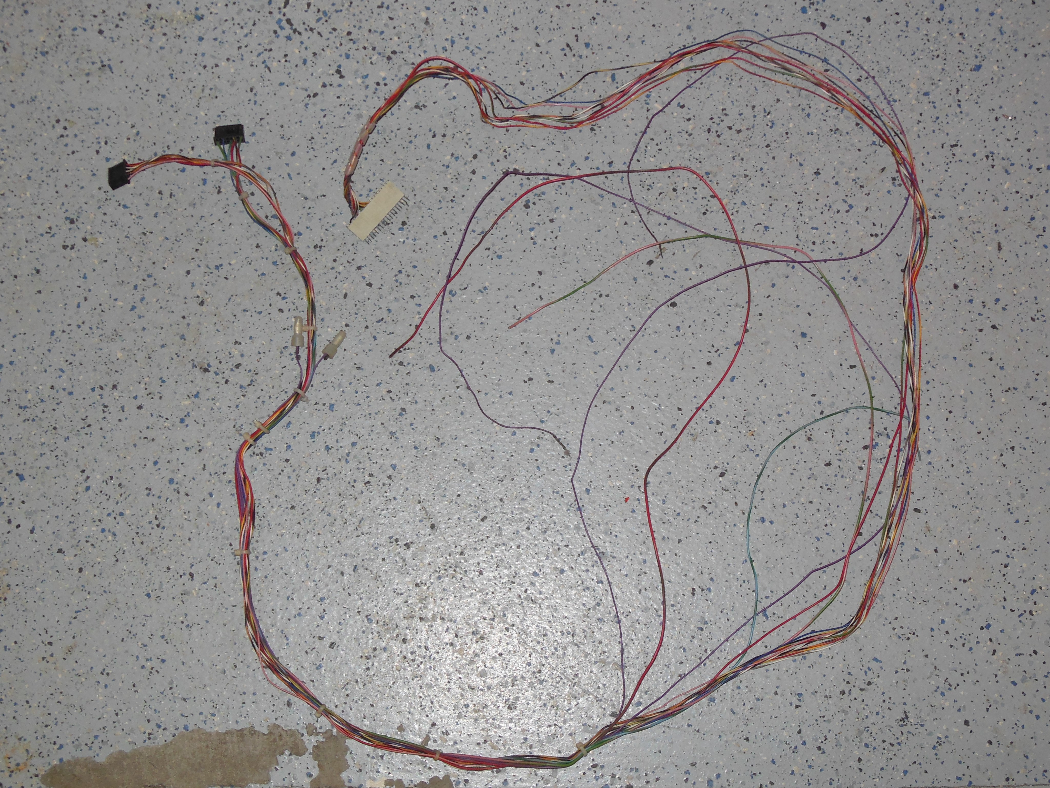 The hacked wiring harness was mostly removed leaving the speaker & credit PCB harness in the cabinet with connection labels. The credit PCB harness was labeled as +12V power ready for use with a 1B1145 credit PCB and the +5V 1B1185 credit PCB was removed (to prevent a nasty accident). The hacked wiring harness was split apart to recover the control panel harness and DC power cabling.