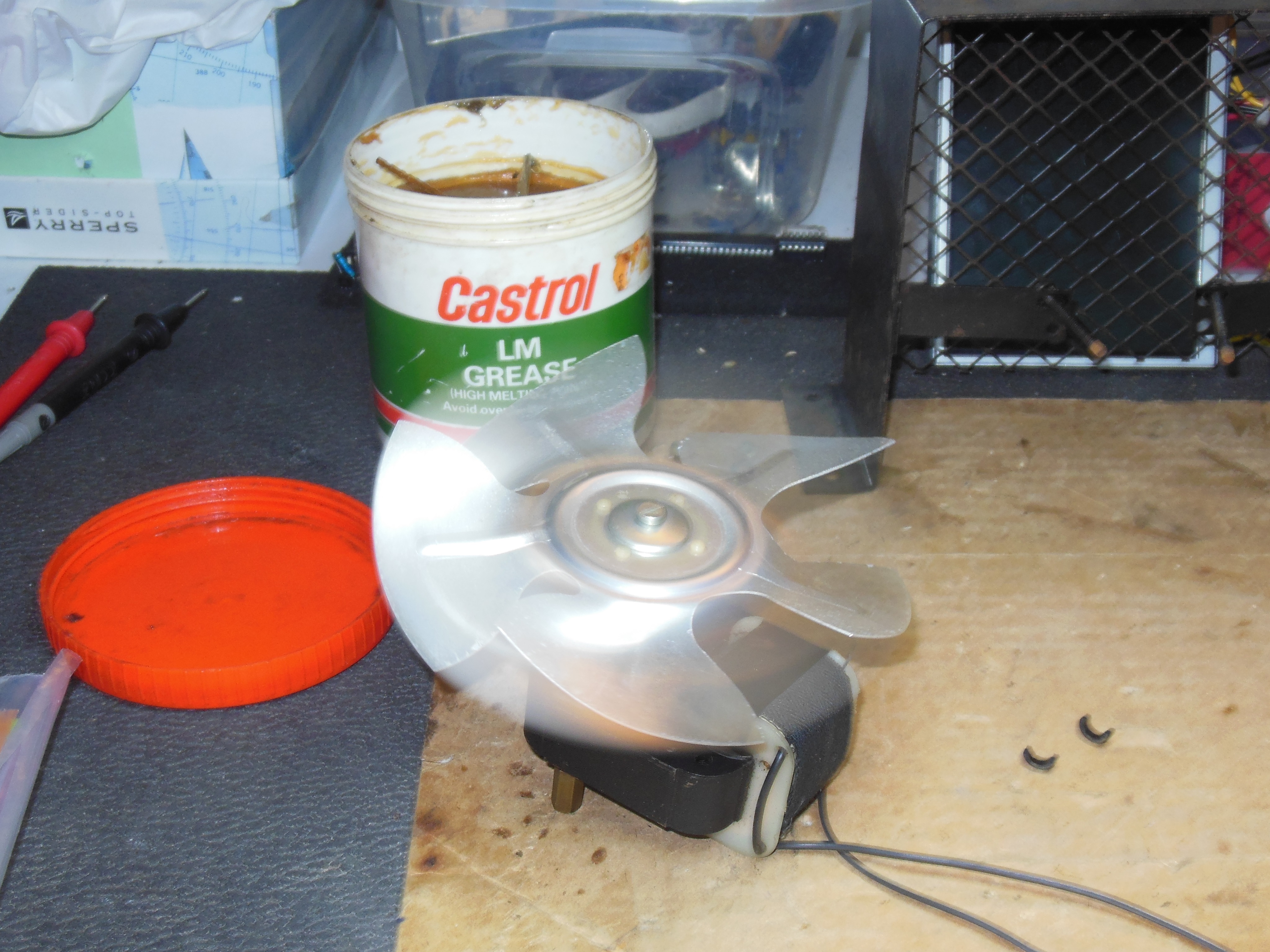 The cabinet fan seemed to be in good condition and working OK. It was cleaned and the bearings greased.