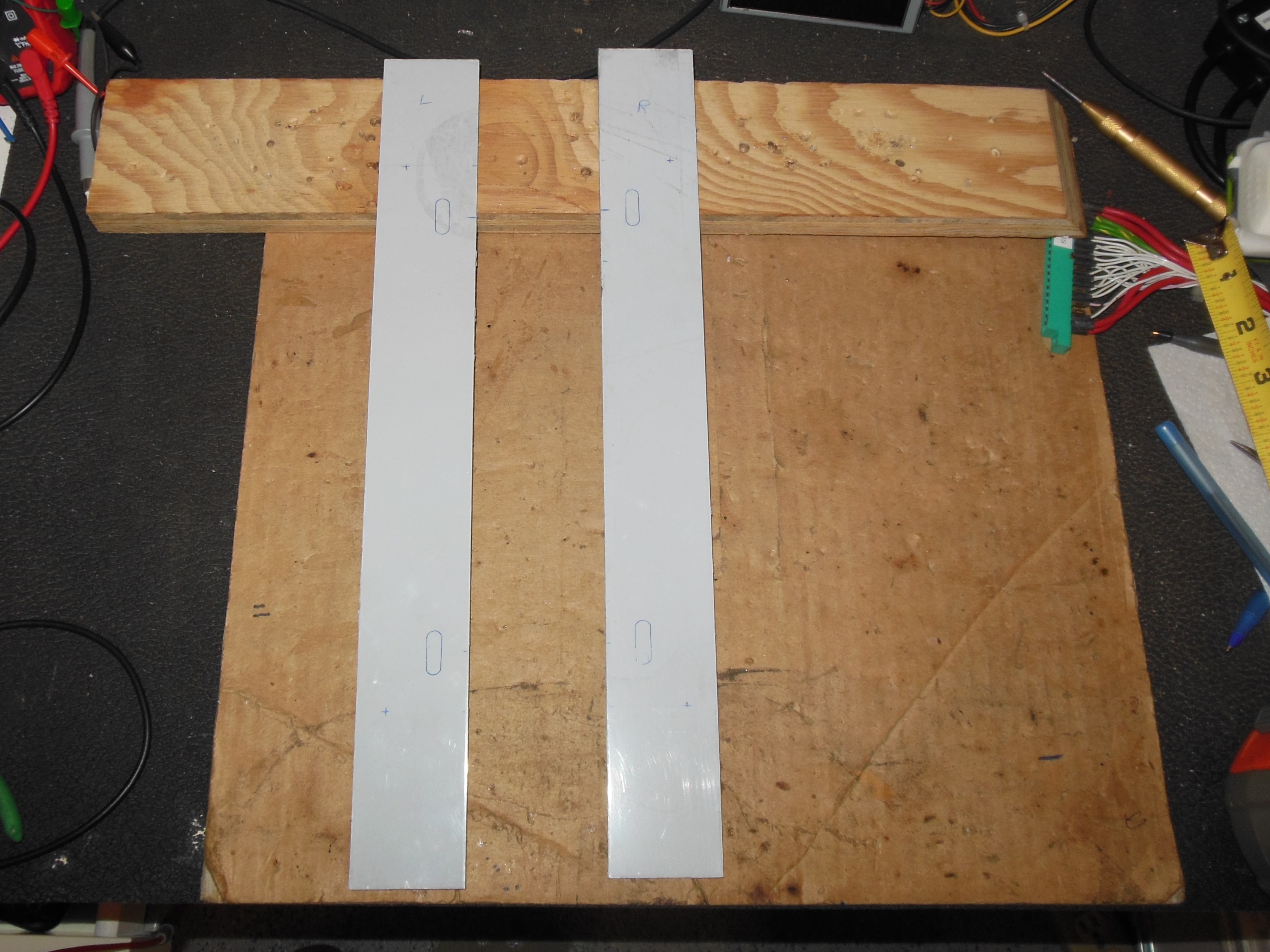 plates to correct for the hacked monitor shelf on this cabinet, ordered from OnlineMetals: