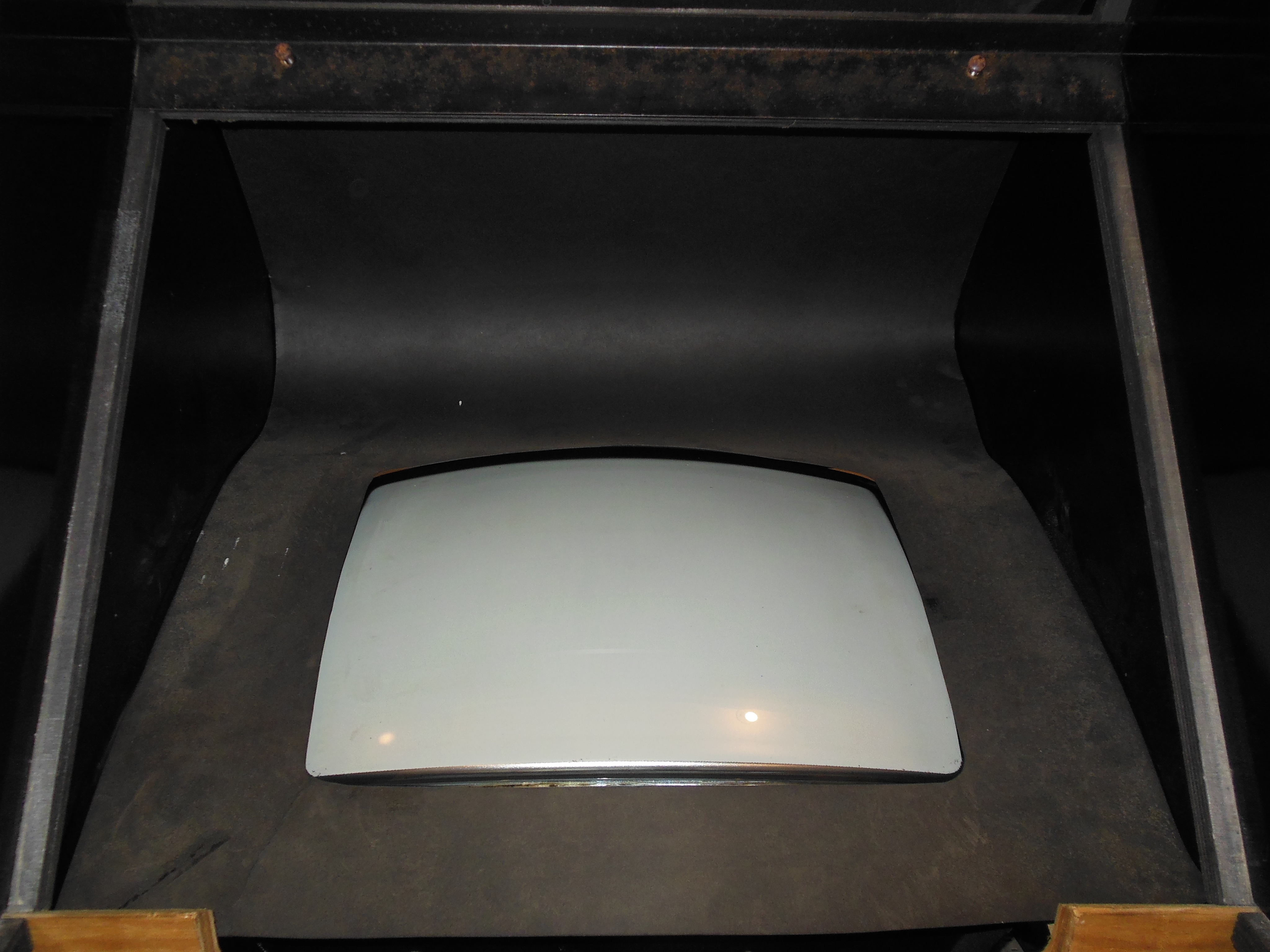 I had one spare but ripped original native horizontal monitor surround left over from the Universal B0 restoration (that became the vertical Cat'n'Mouse cabinet). The plan was to repair this surround and use it as a template to make a reproduction horizontal surround fitting this flat marque style cabinet.