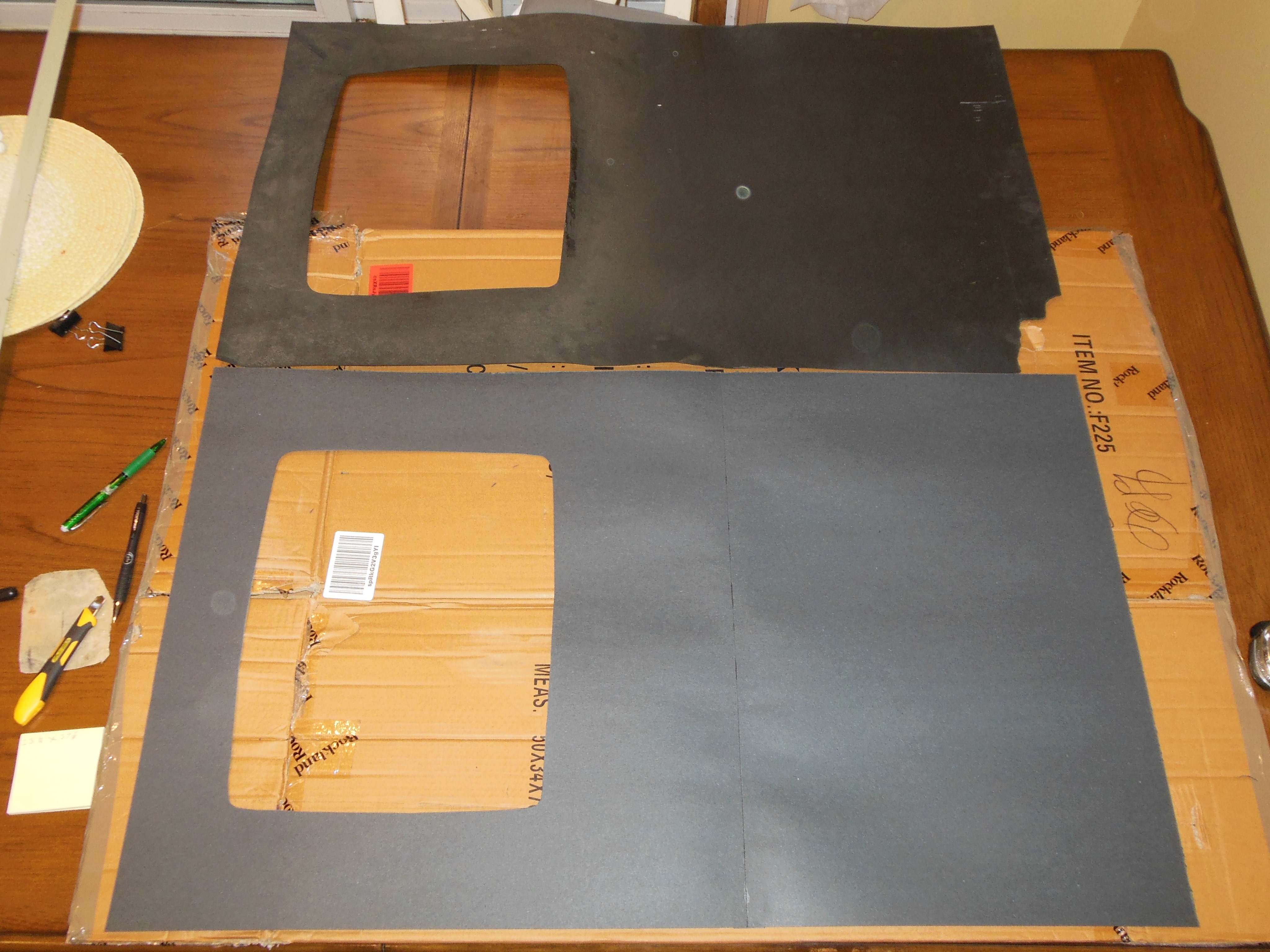 Whist comparing the original cabinet surround with the B0 surround I discovered that it appeared that the B0 surround had a crease score that allowed it to be folder over to shorten it to fit the flat marque cabinet. Therefore, I could use the B0 as an identical template with a similar scoring and fold it over to fit.