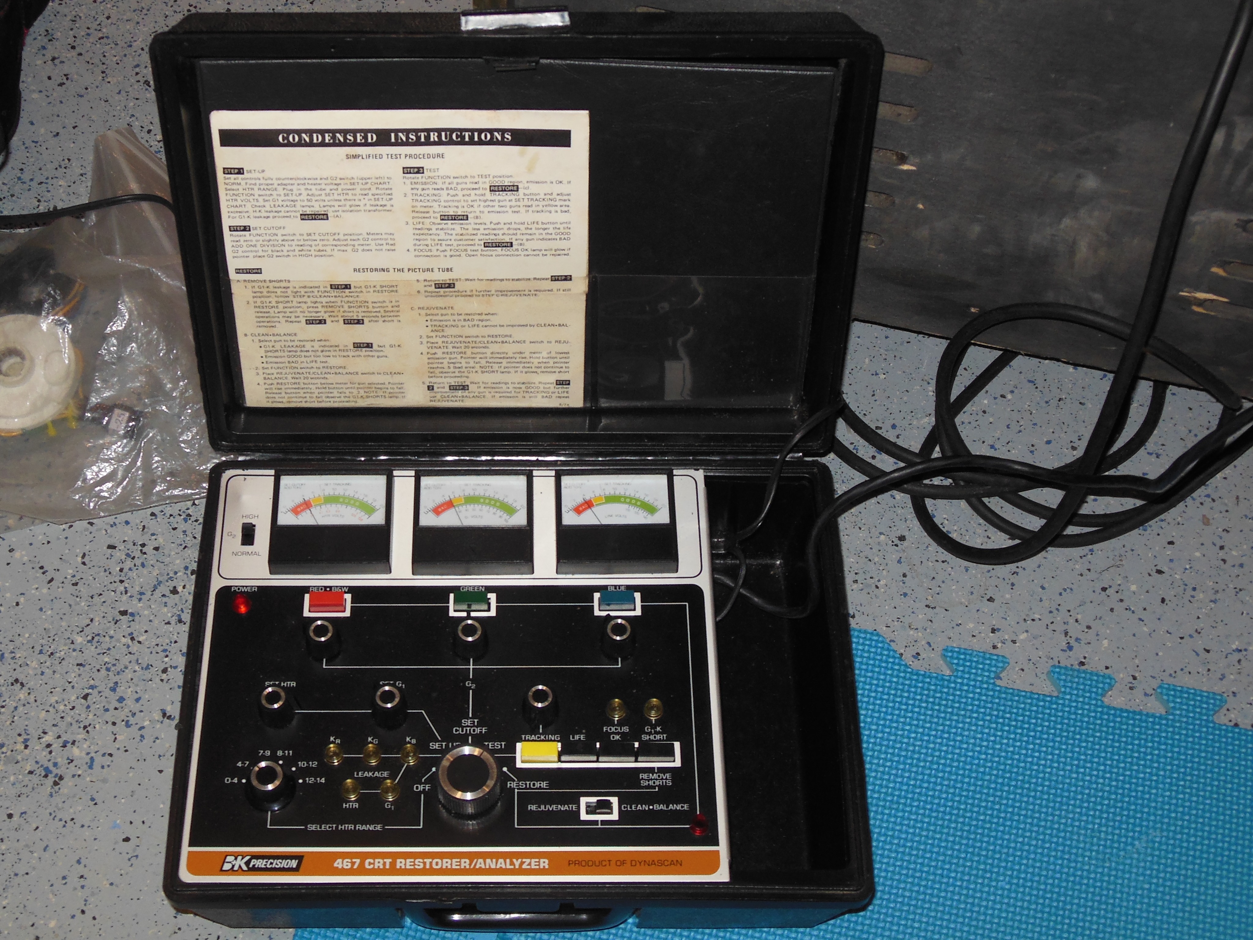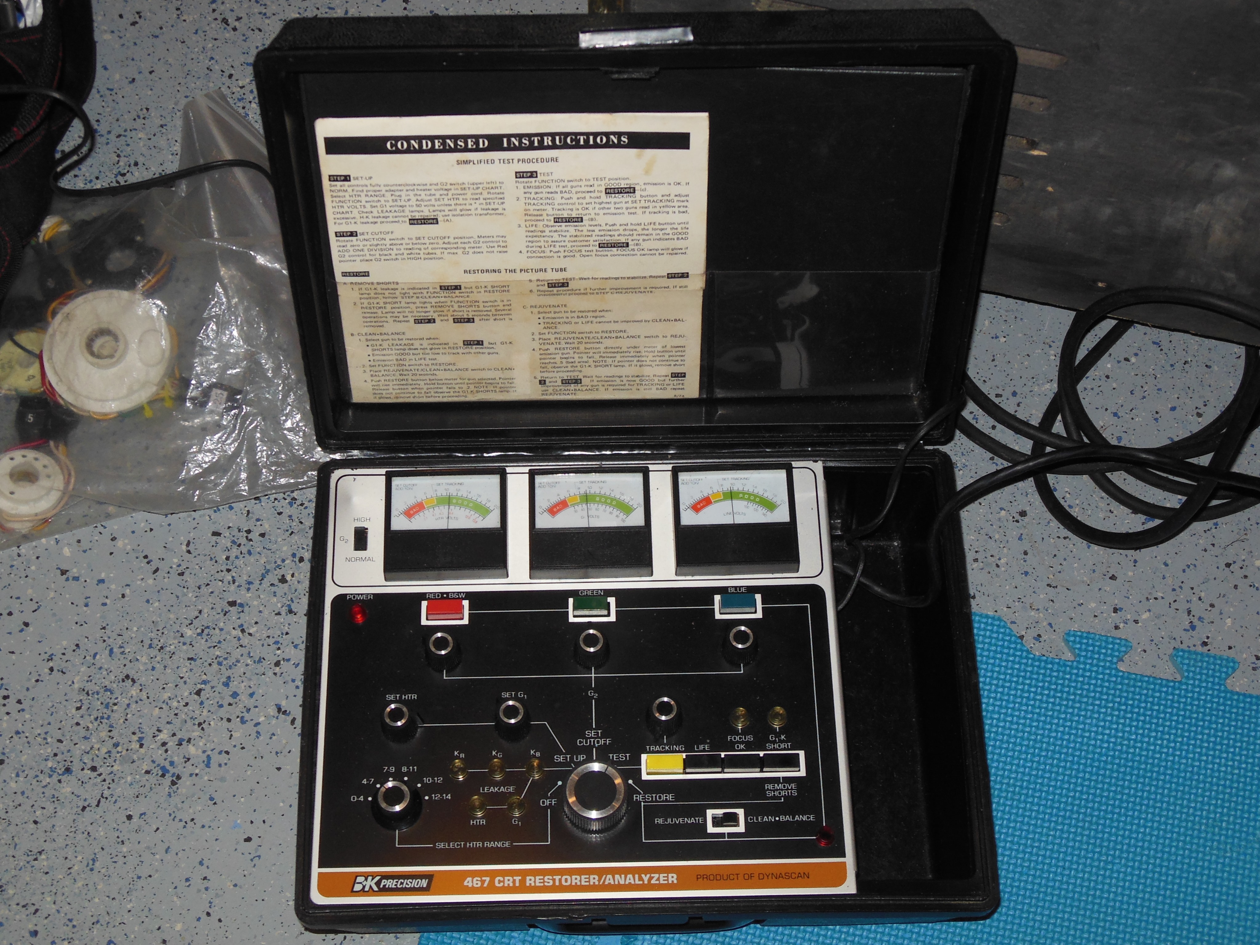 Previously I'd discovered that one contributing factor to soft focus was high brightness & contrast because the CRT gun drive was weak. Testing with the BK 467 CRT restorer/analyzer confirmed that the gun drive was a little weak and a rejuvenation improved the gun drive measurements.