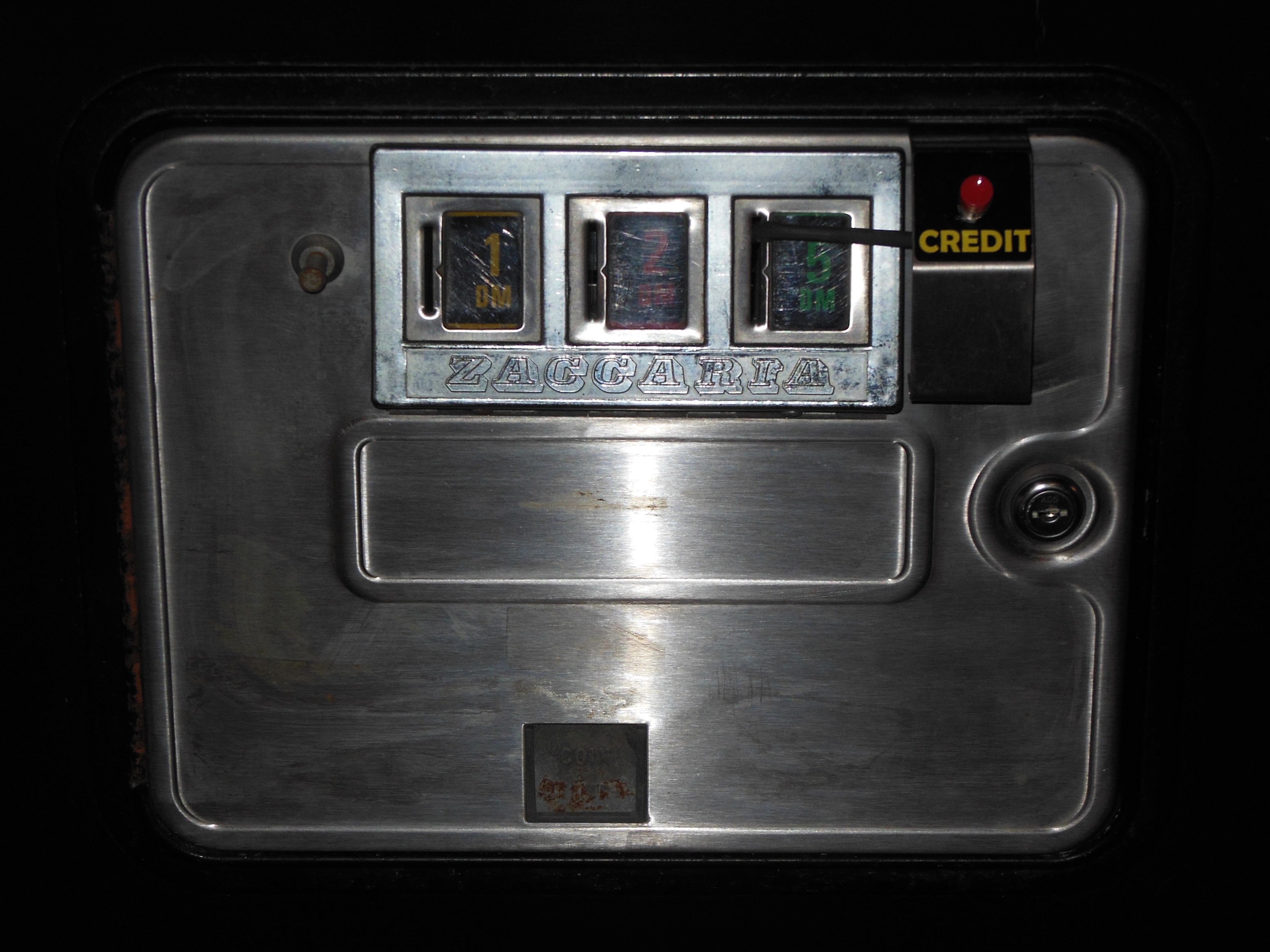 The coin door was removed, a credit button installed and refitted back into the cabinet.