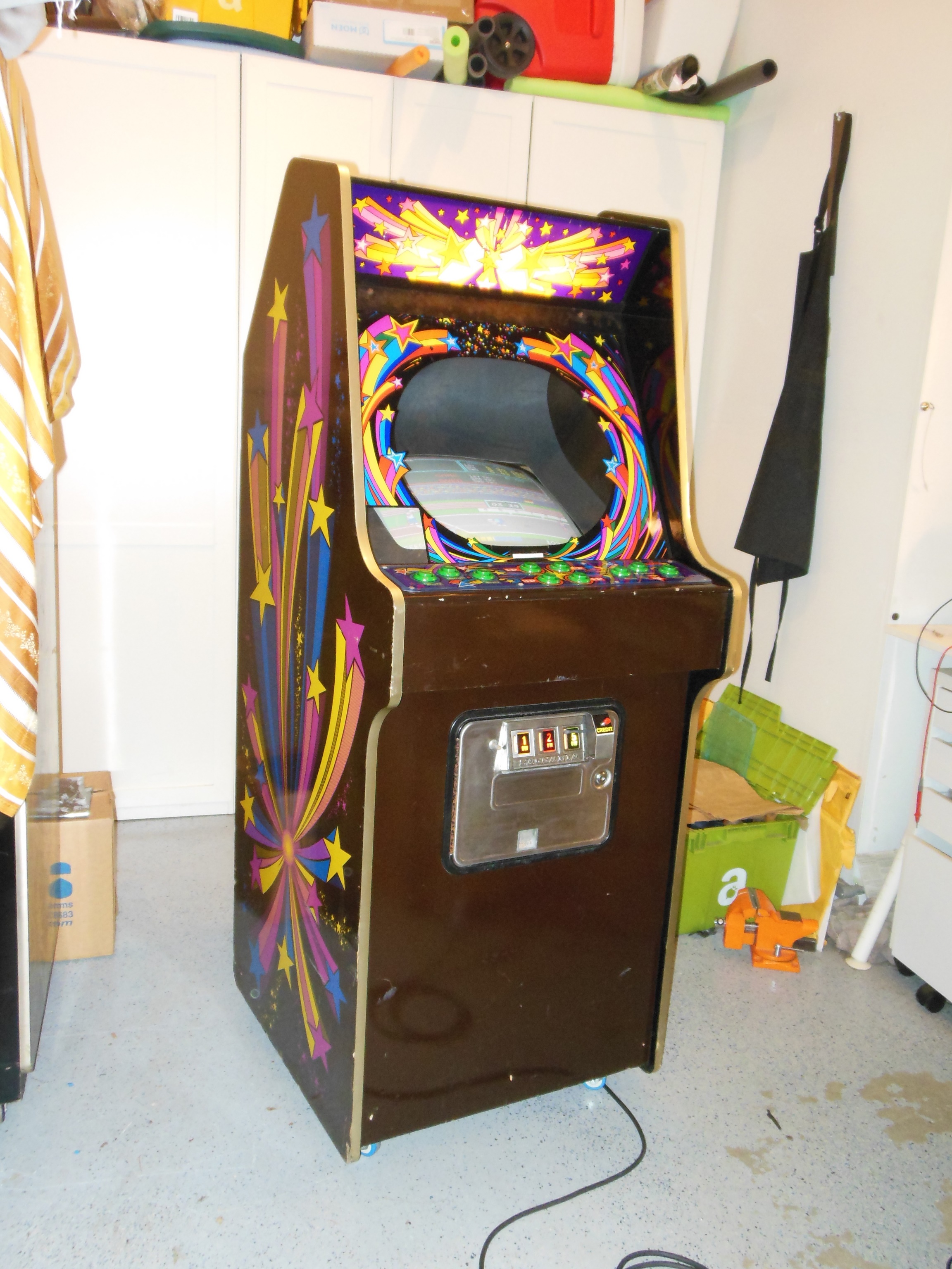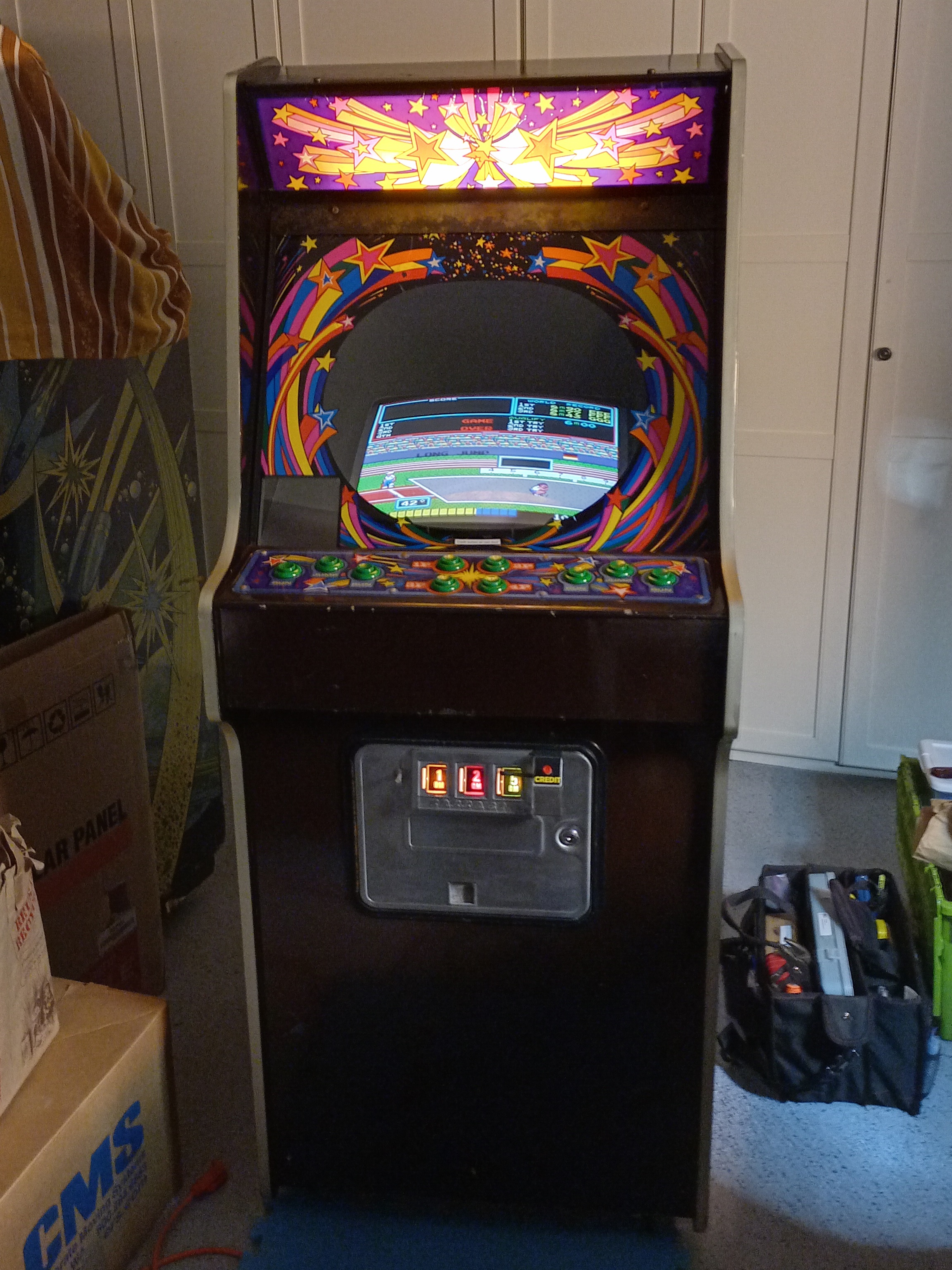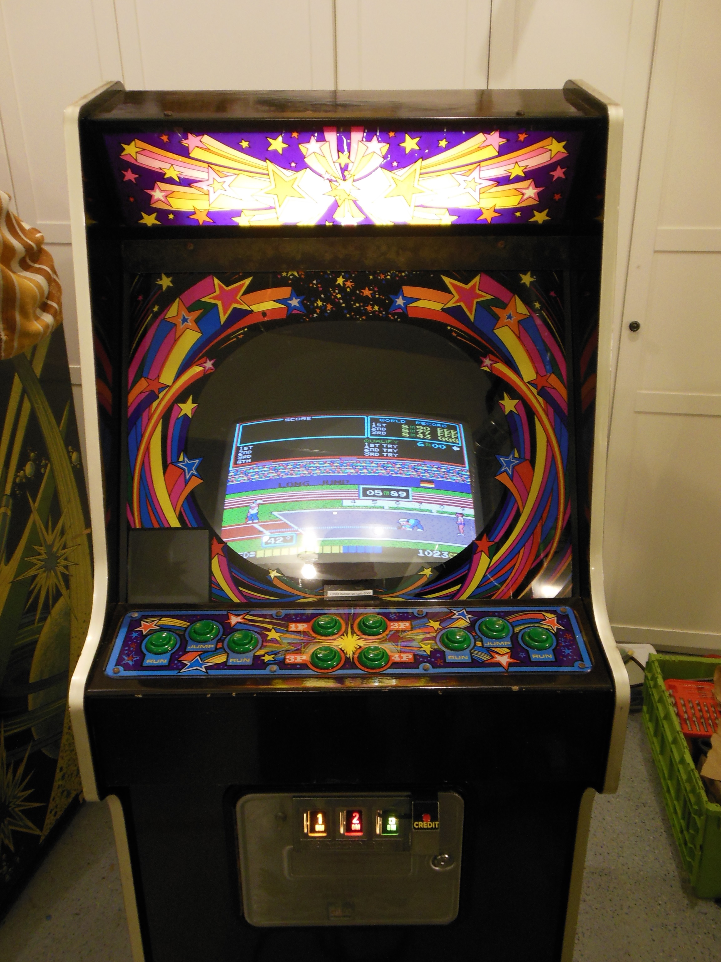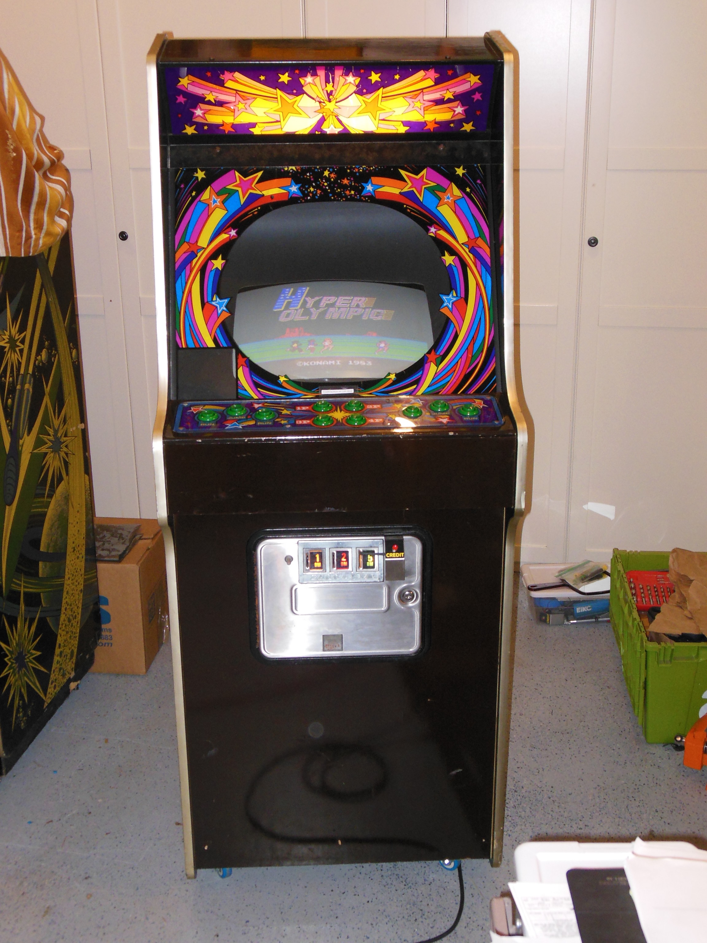 This universal star upright cabinet converted to Hyper Olympic was sourced by a fellow collector from an undisclosed location in Germany.